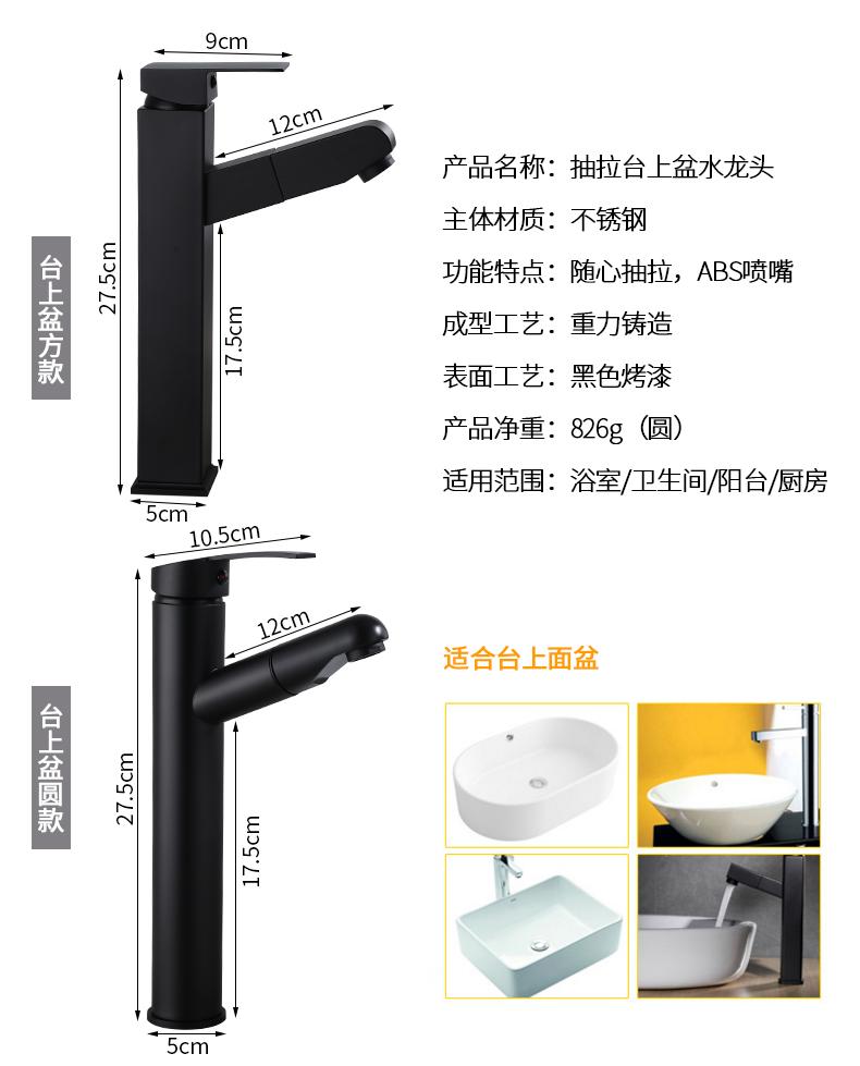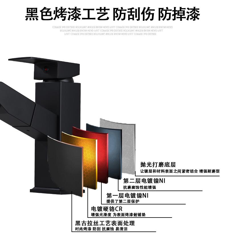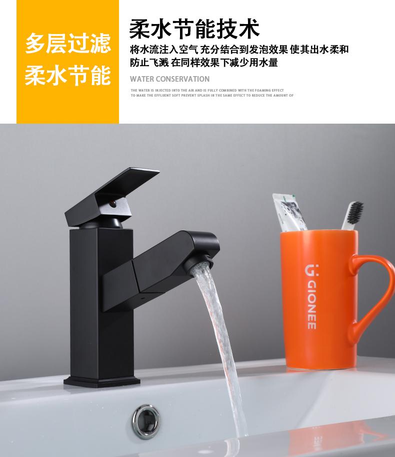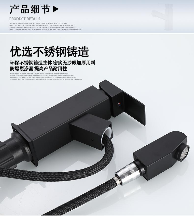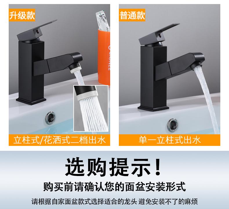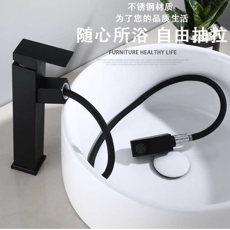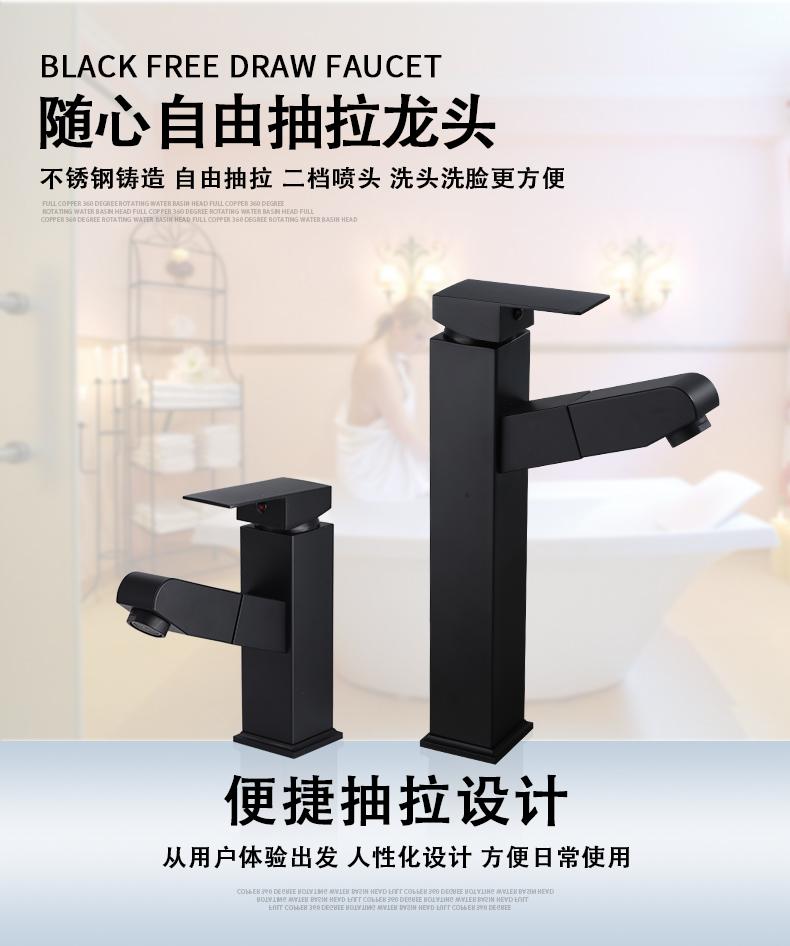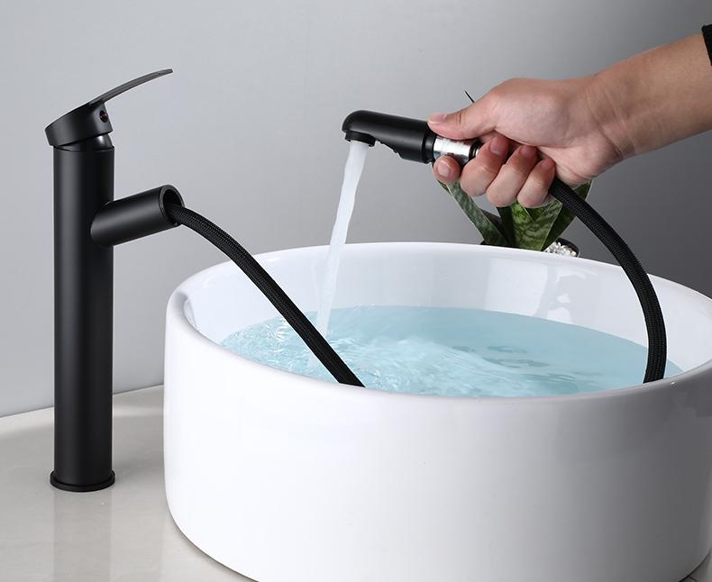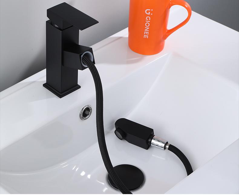 Xyt negro grifo extraíble para agua fría y caliente grifo de lavabo de acero inoxidable grifo de lavabo de baño retráctil