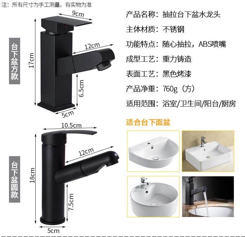 Δεεεεδ round undercounter basin (black pull-out tube) δεεεεδ, Δεεεεδ square undercounter basin (black pull-out...