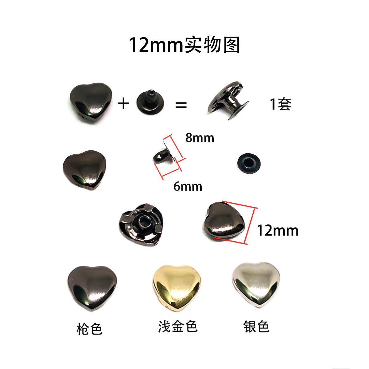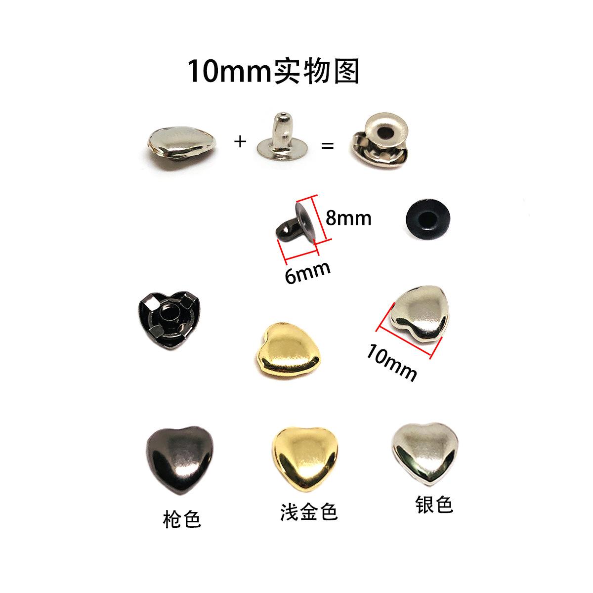 Clavos en forma de corazón transfronterizos de 8-12 mm para equipaje de cuero, ropa, accesorios, remaches de amor DIY