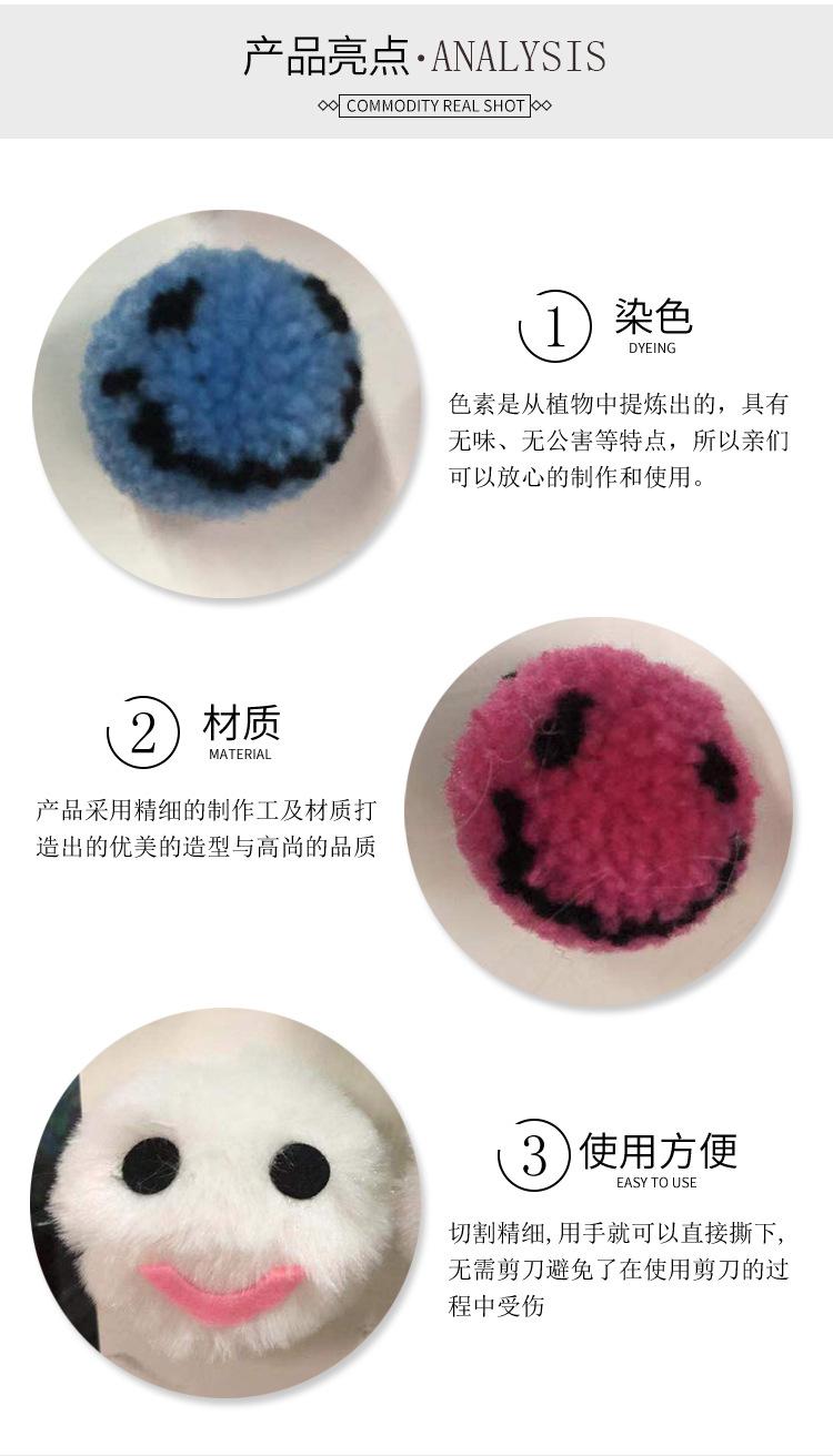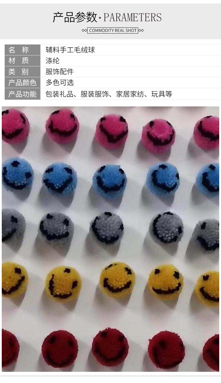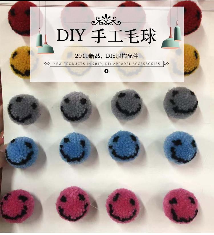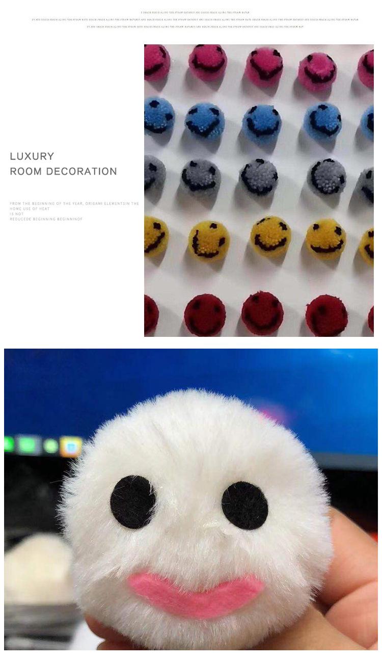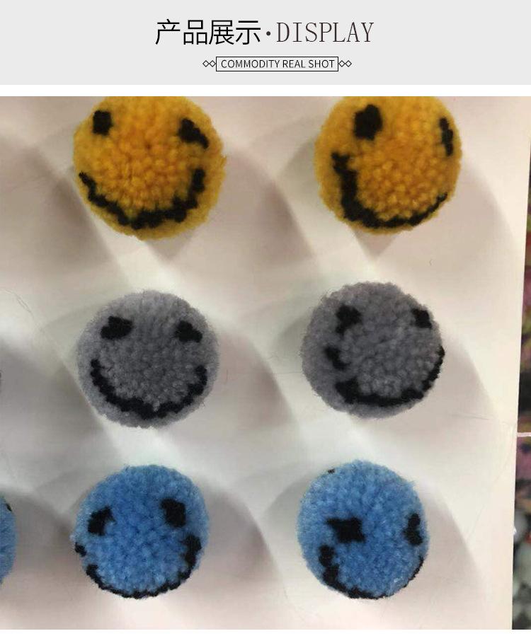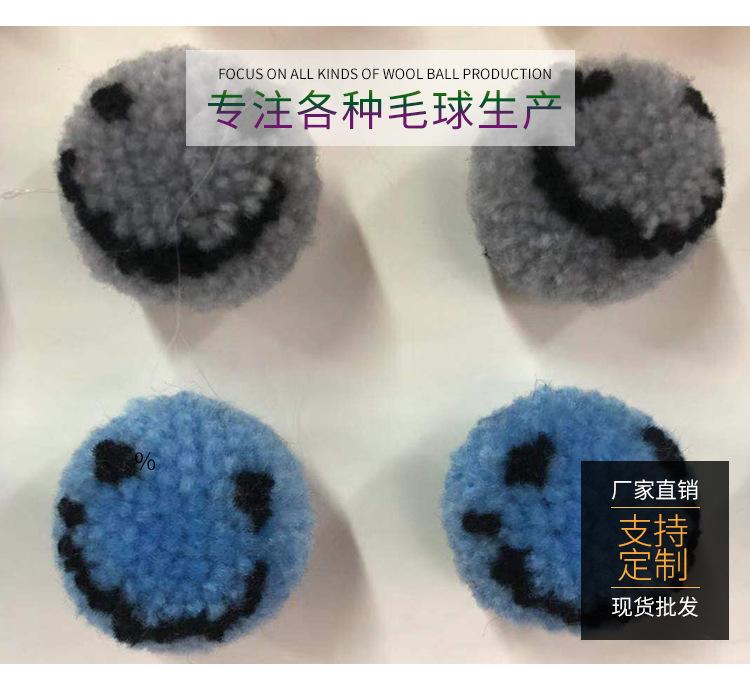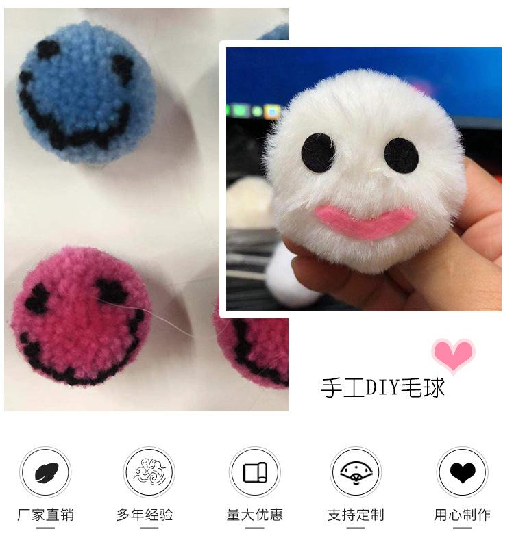 Bolas de pelo de fábrica, bolas de lana acrílica de poliéster, joyería DIY, bolas de pelo redondas con cara sonriente, bolas de arándano, venta directa de fábrica al por mayor