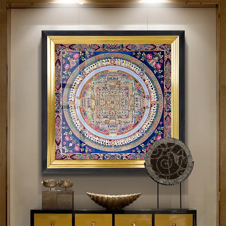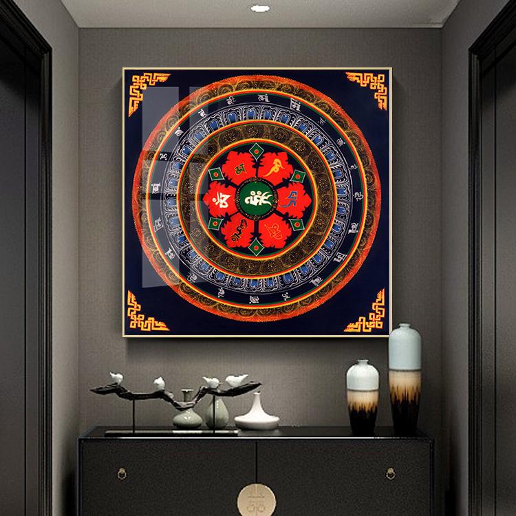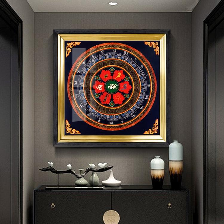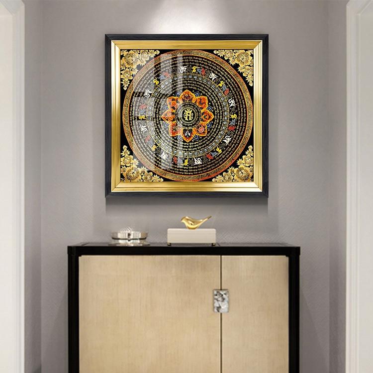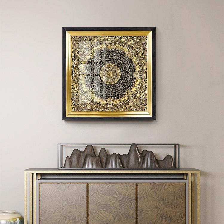 Thangka de oro negro de estilo chino, tamaño A5L, con seis caracteres, Sutra del Corazón de la Verdad, pintura colgante para entrada, entrada, sala de estar, pasillo, luz de pared, pintura decorativa de lujo