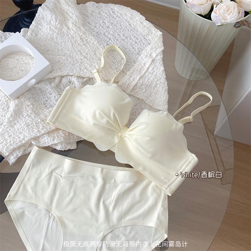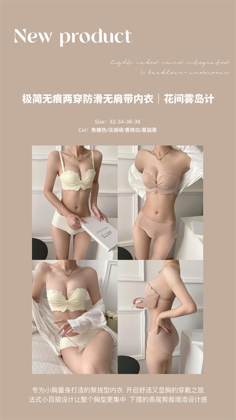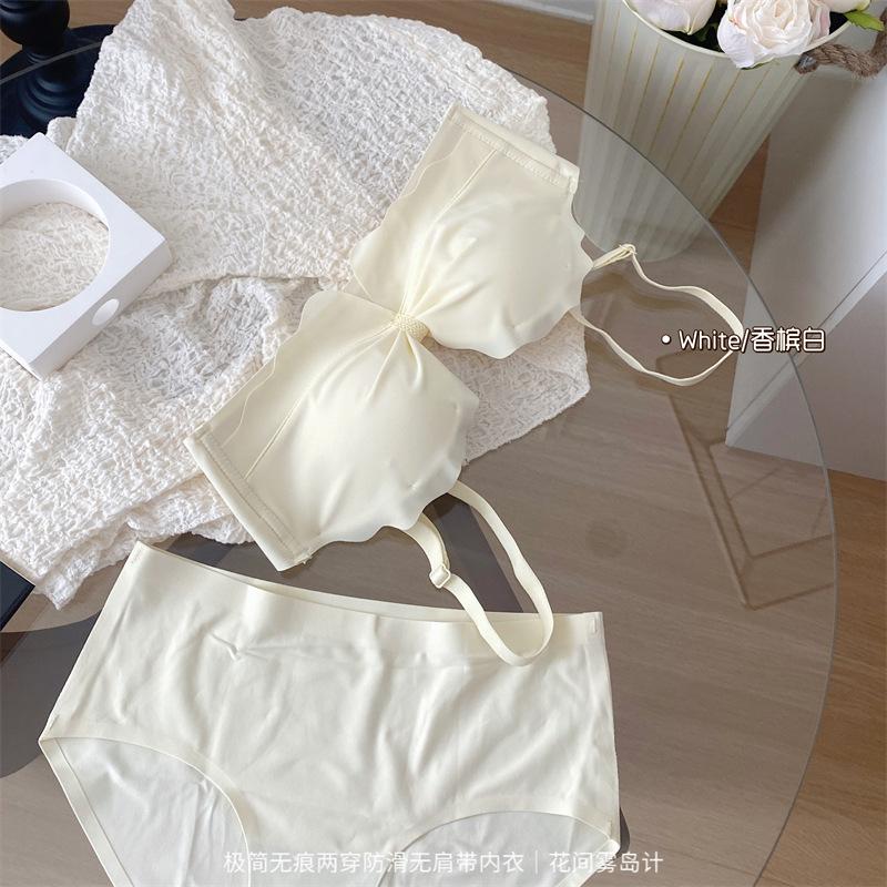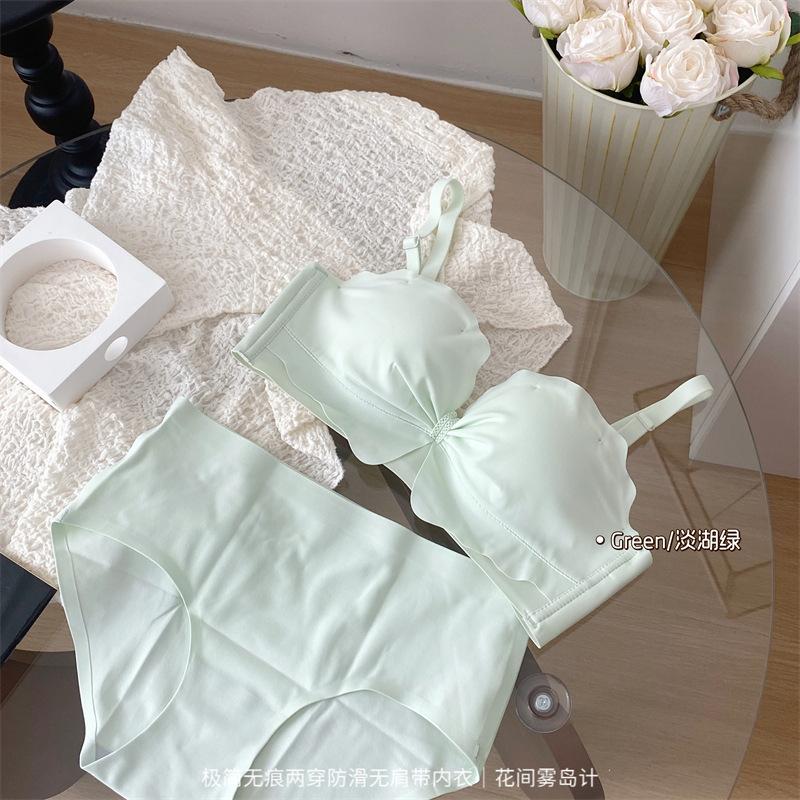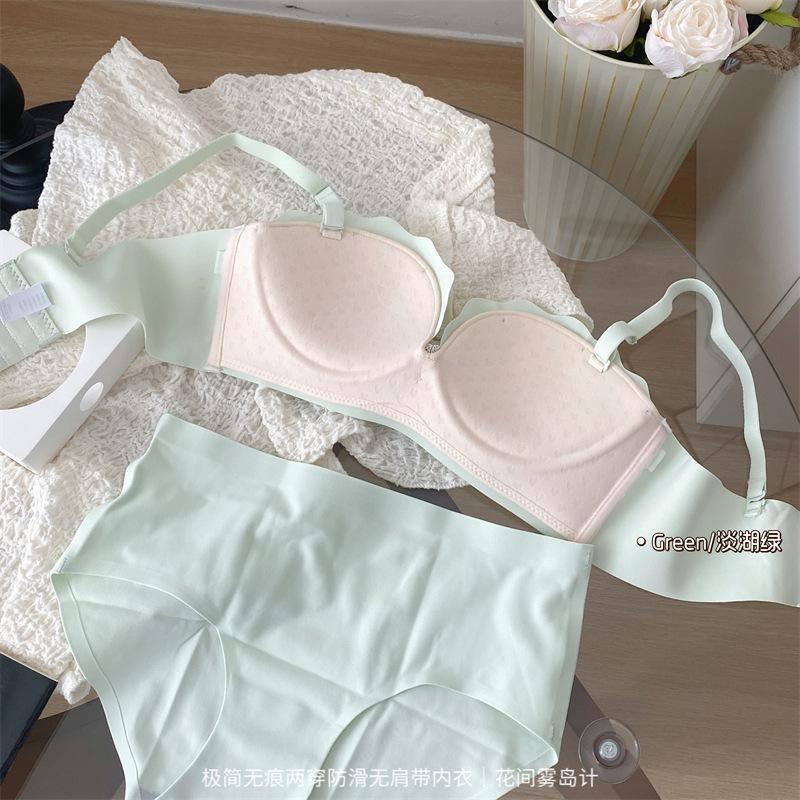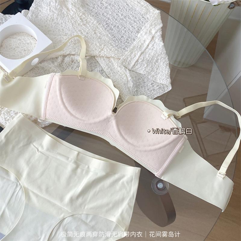 Ropa interior antideslizante sin tirantes para mujer, de verano, sin aros, para niñas, con pecho pequeño, push-up, pecho plano, conjunto de sujetador Pure Desire para estudiantes