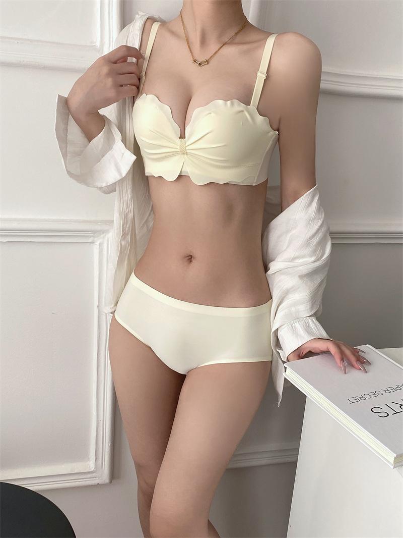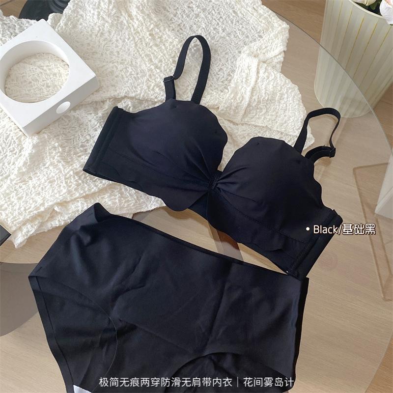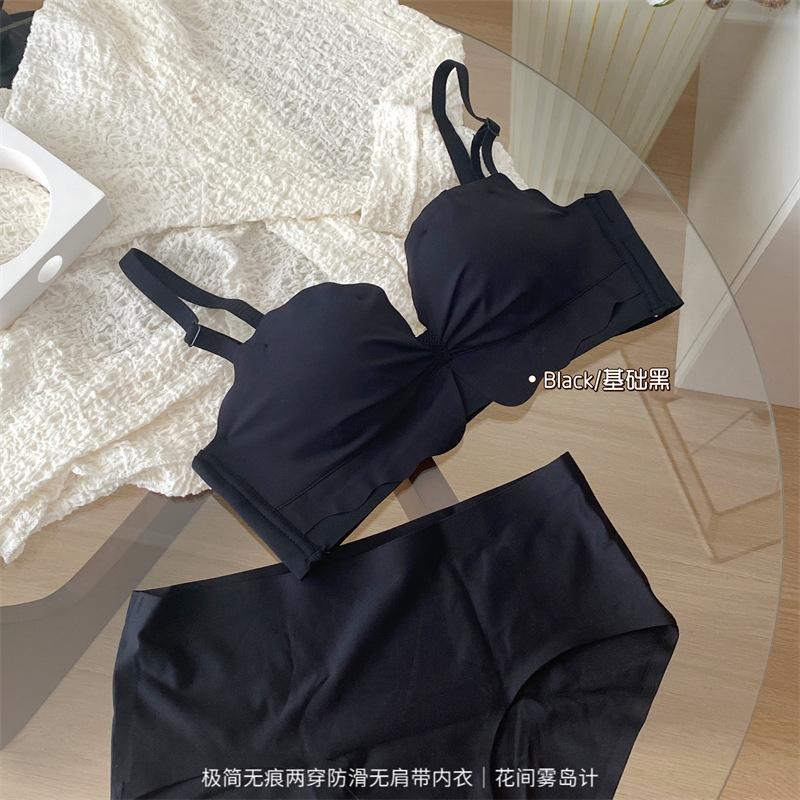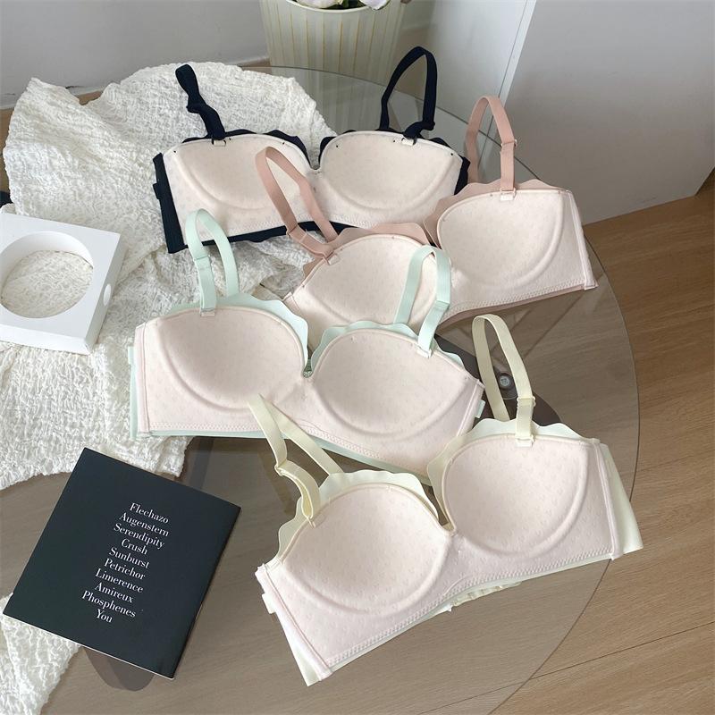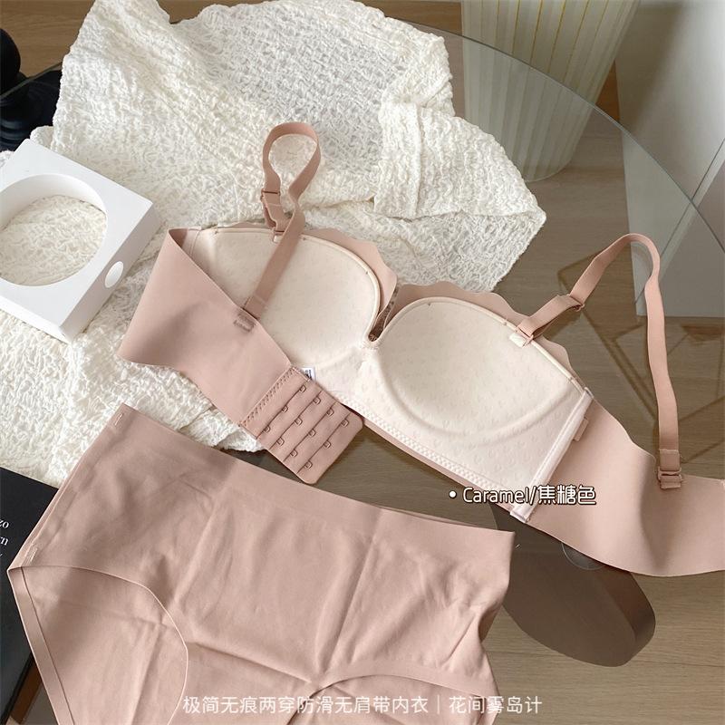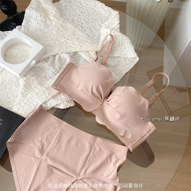 Ropa interior antideslizante sin tirantes para mujer, de verano, sin aros, para niñas, con pecho pequeño, push-up, pecho plano, conjunto de sujetador Pure Desire para estudiantes