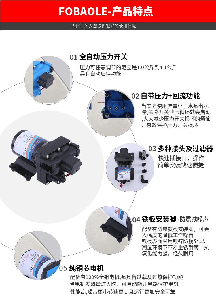 Bomba de agua silenciosa de 24V 11.3 litros yate booster 12v suministro de agua para RV agua clara bomba de alta presión bomba de diafragma eléctrica en miniatura