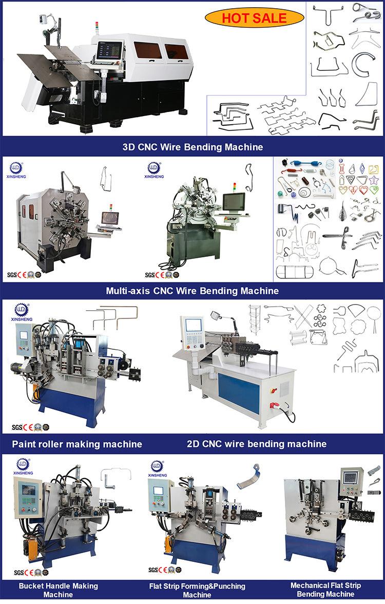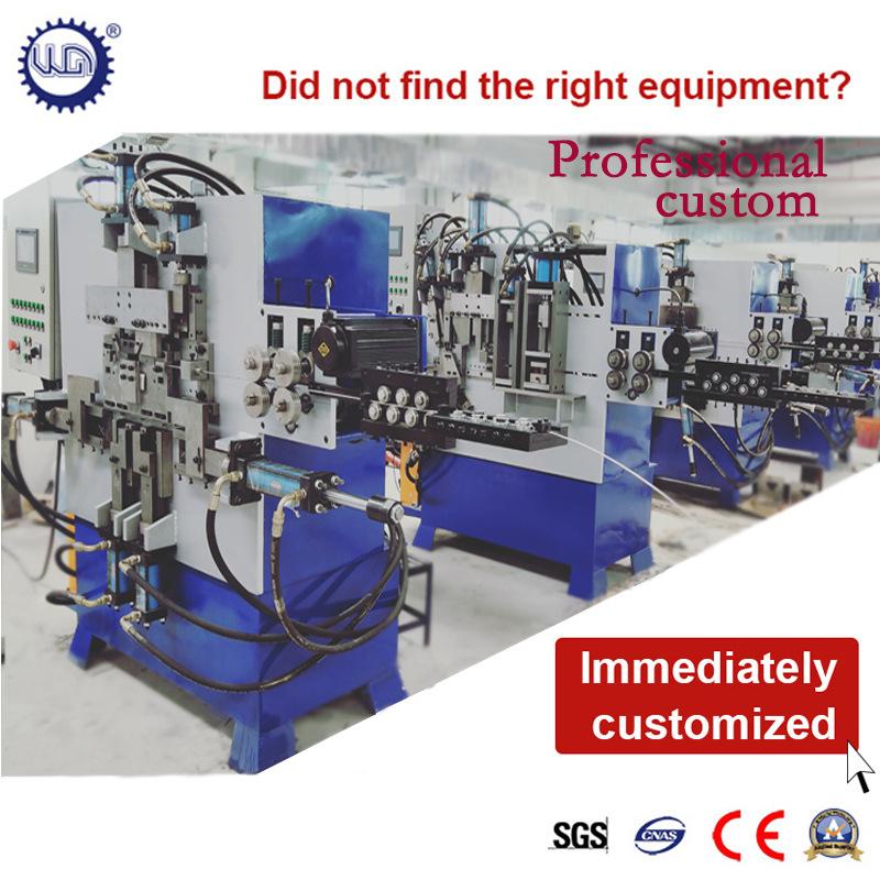 Esta máquina formadora se utiliza especialmente para producir soportes para cepillos de rodillo. Sus funciones incluyen: enderezamiento totalmente automático.-corte-La perforación del oído-Aplanar-chaflán-Frótate los dientes-Doblado-El producto terminado se puede formar en un solo proceso, lo que resuelve el complicado proceso de múltiples equipos semiautomáticos de manera tradicional, ahorra mano de obra y electricidad, y la precisión del procesamiento es alta.0,1 mmAlto rendimiento. El mango de plástico se puede instalar de forma manual o automática, según sus preferencias.