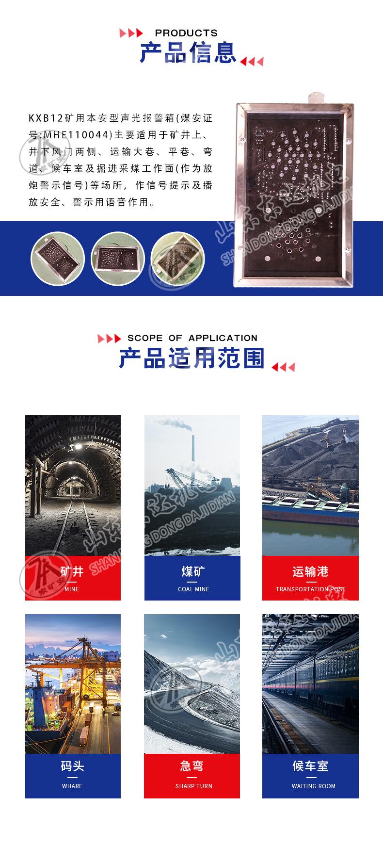 La caja de alarma sonora y luminosa KXB12 para minería intrínsecamente segura es principalmente adecuada para lugares como ambos lados de las puertas de aire arriba y abajo de la mina, túneles de transporte, túneles horizontales, curvas, coches de mono, salas de espera y frentes de trabajo de extracción de carbón (como señales de advertencia de voladura), para indicaciones de señal y reproducción de voces de seguridad y advertencia.