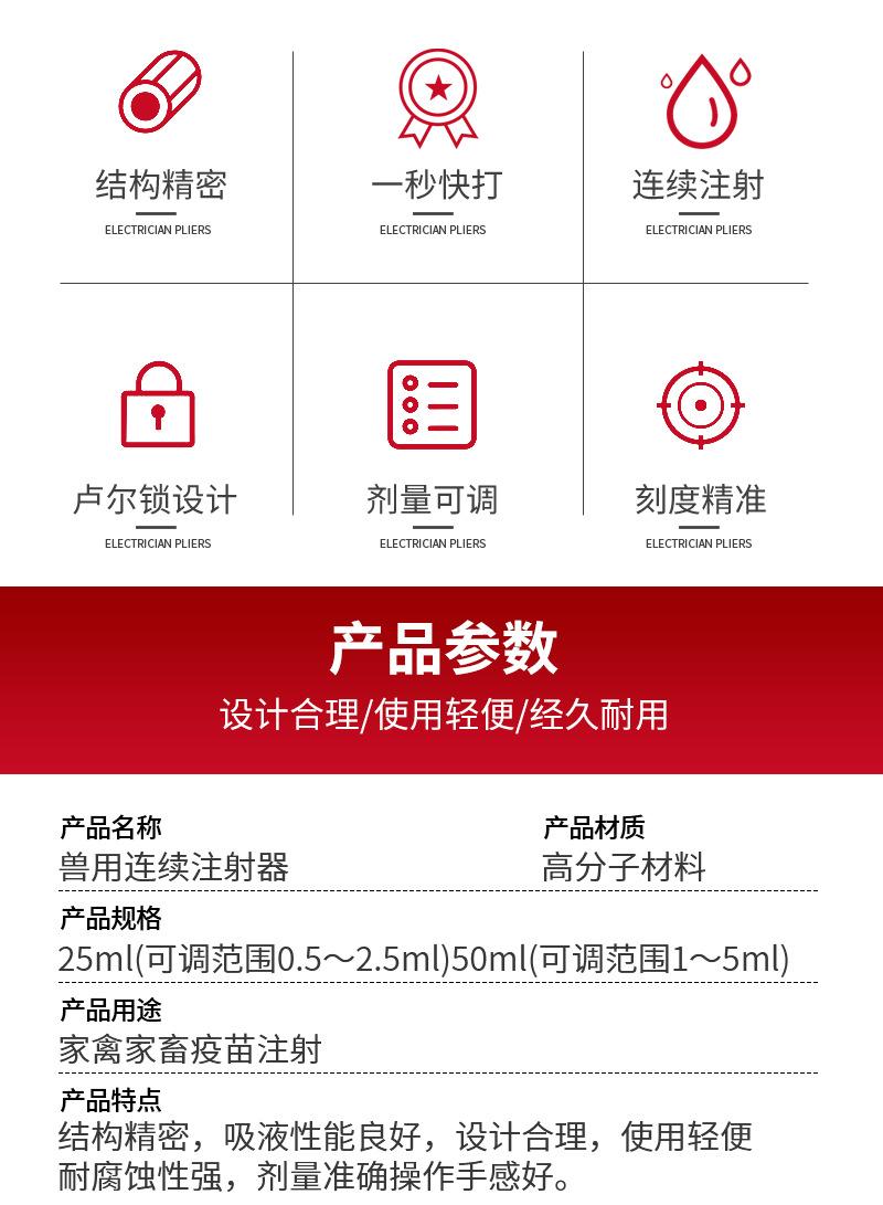 Dispositivo de Vacunación por Inyección Continua Jeringa Veterinaria Tubo Jeringa Continua 2ml 5ml Dispositivo de Vacunación para Cerdos Tamaño Grande para Pollos