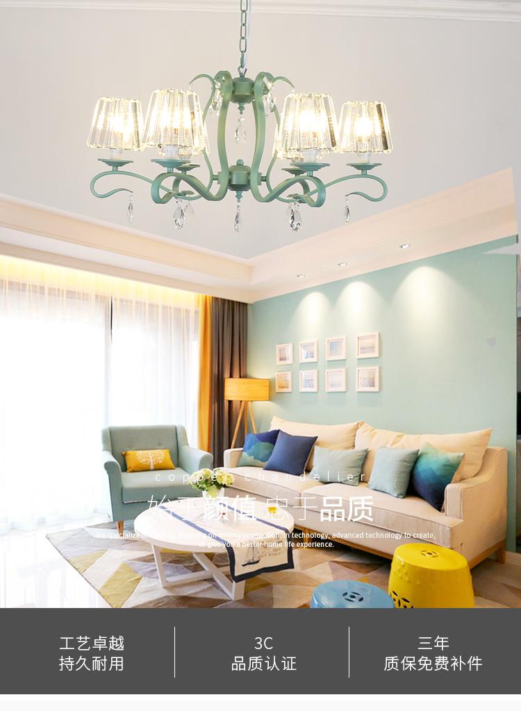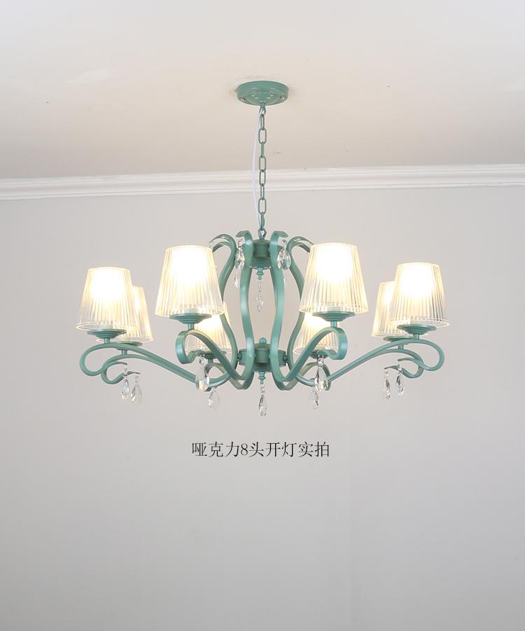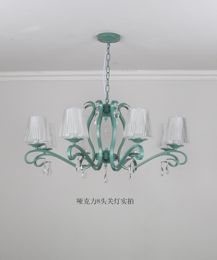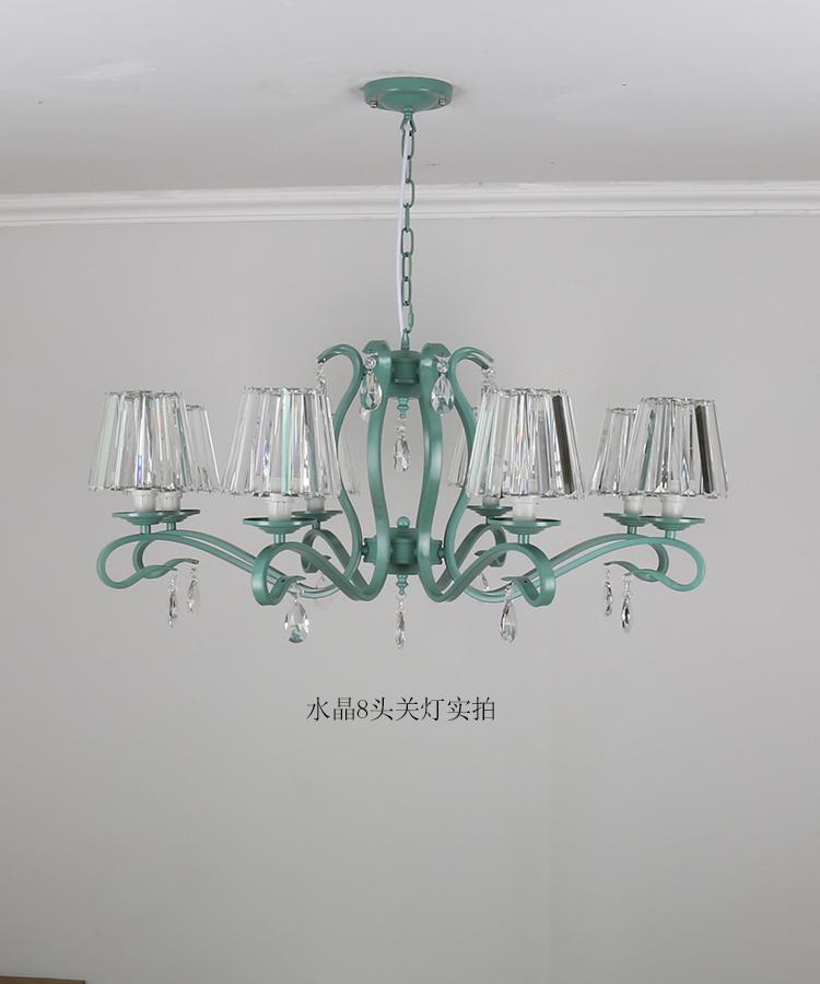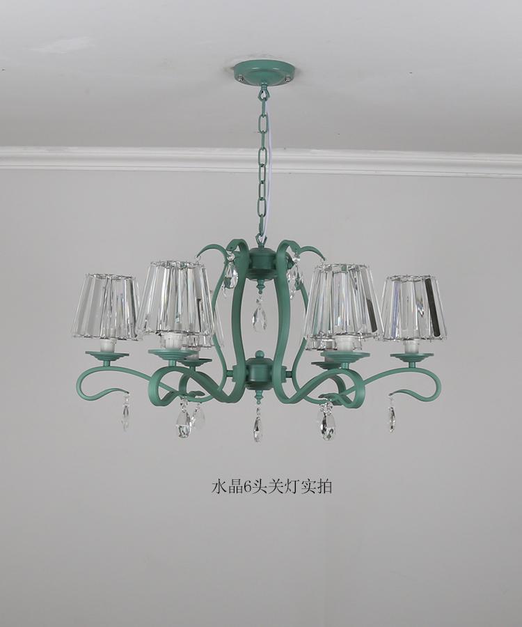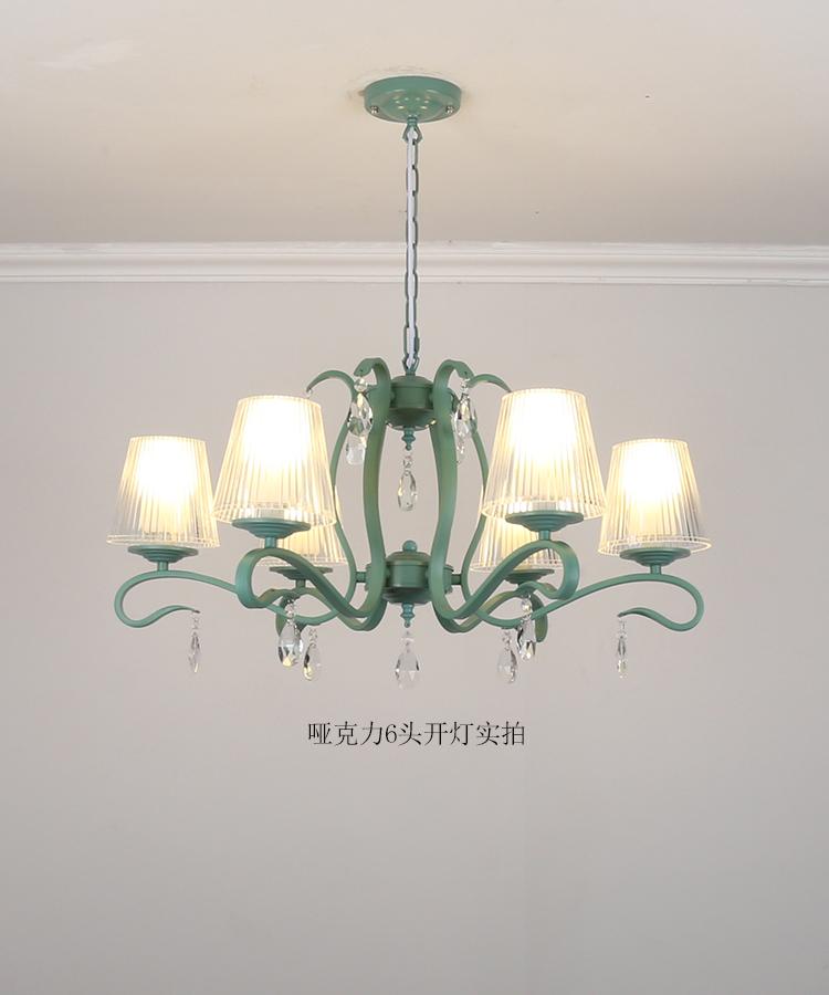 Lámpara de araña de cristal nórdico, lámpara de comedor verde, lámpara de personalidad creativa, iluminación simple y moderna para dormitorio macarrón
