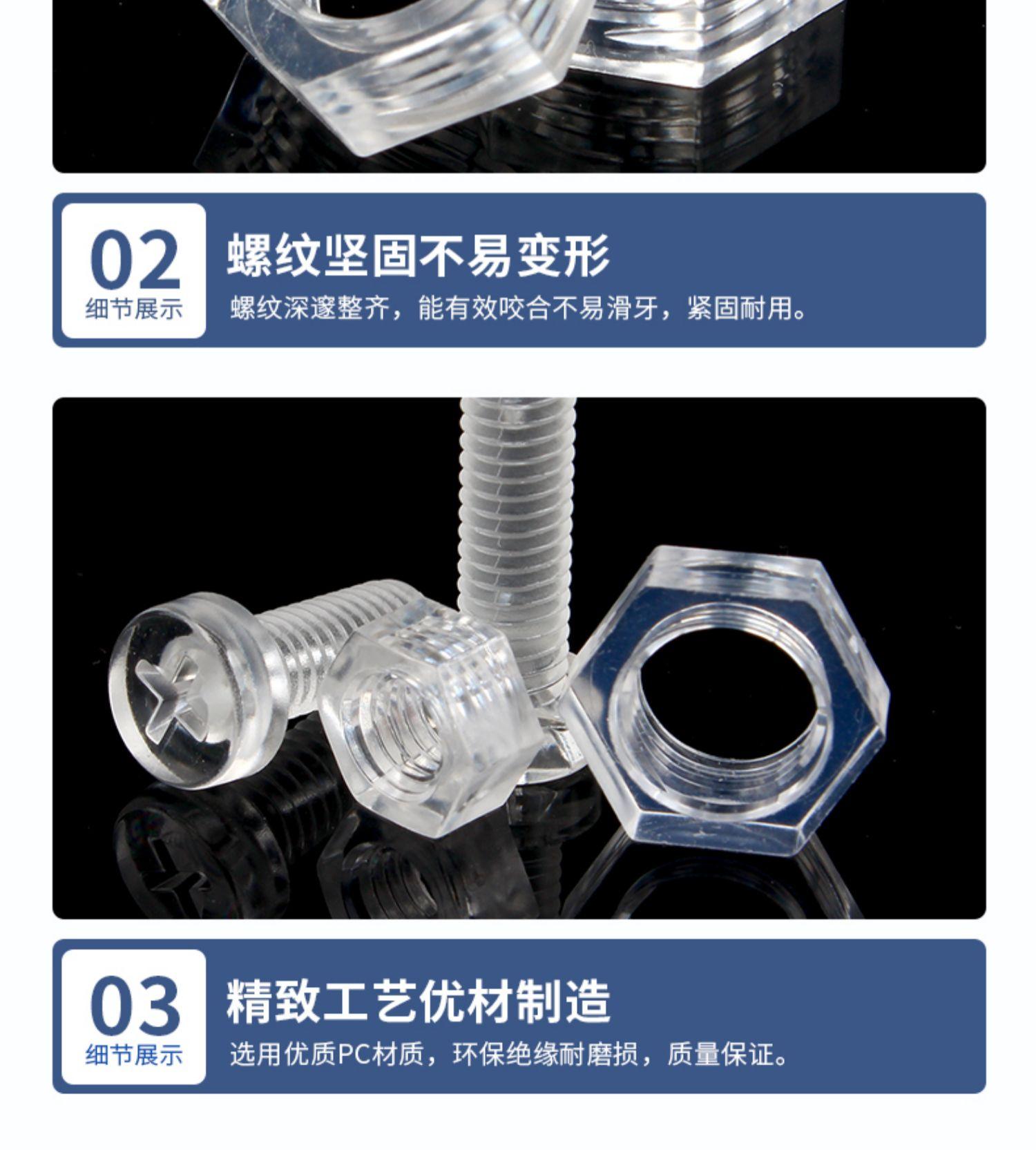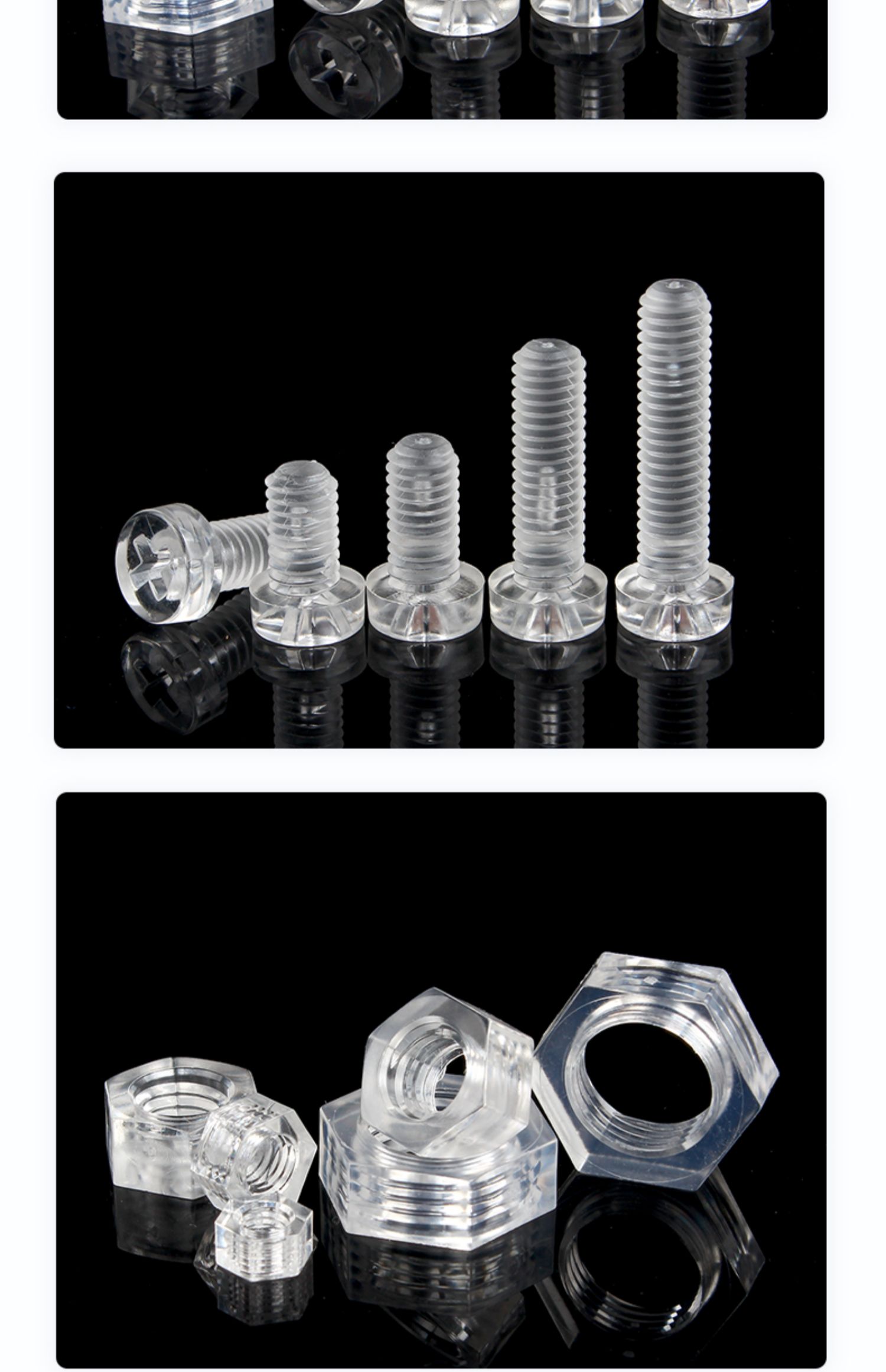 Tornillo de plástico transparente para PC, cabeza redonda, tornillo cruzado, tuerca combinada, perno de cabeza plana de acrílico, plástico M2-M10