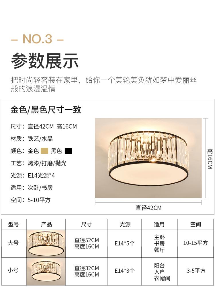 Lámpara de techo moderna de lujo para dormitorio principal, lámpara de cristal, ambiente sencillo, lámpara redonda cálida, novedad de 2022