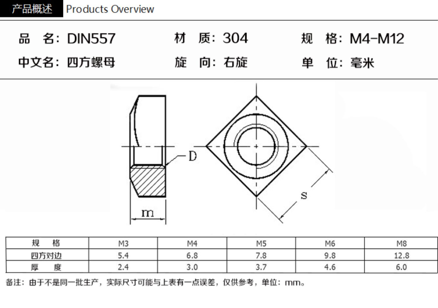 Tuerca cuadrada de acero inoxidable 304, tuerca cuadrada, tuerca cuadrada, tuerca cuadrada, M3M4M5M6M8M10M12