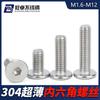 Tornillo de cabeza plana y delgada de acero inoxidable 304 CM, tornillo de cabeza plana grande con hexágono interior M1.6-M12