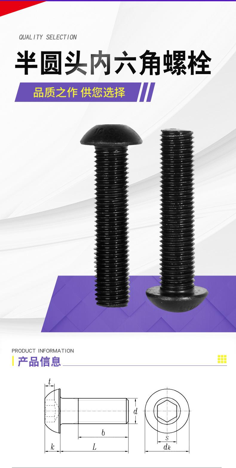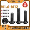 Perno de cabeza hexagonal semicircular de alta resistencia, grado 10.9, M5M6M8, tornillo de cabeza plana de acero al carbono negro