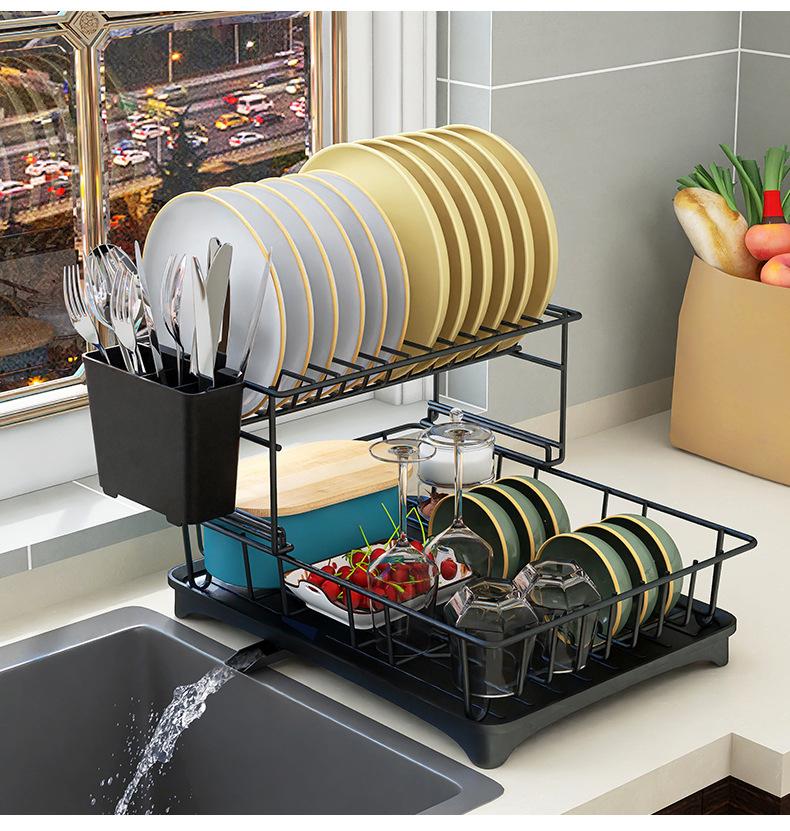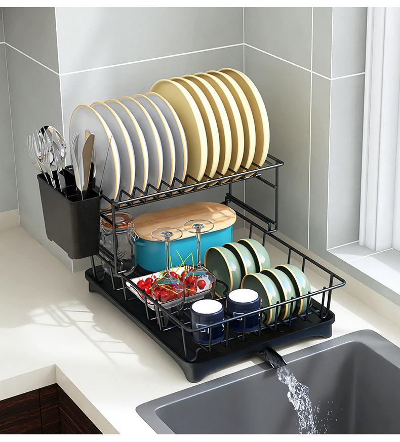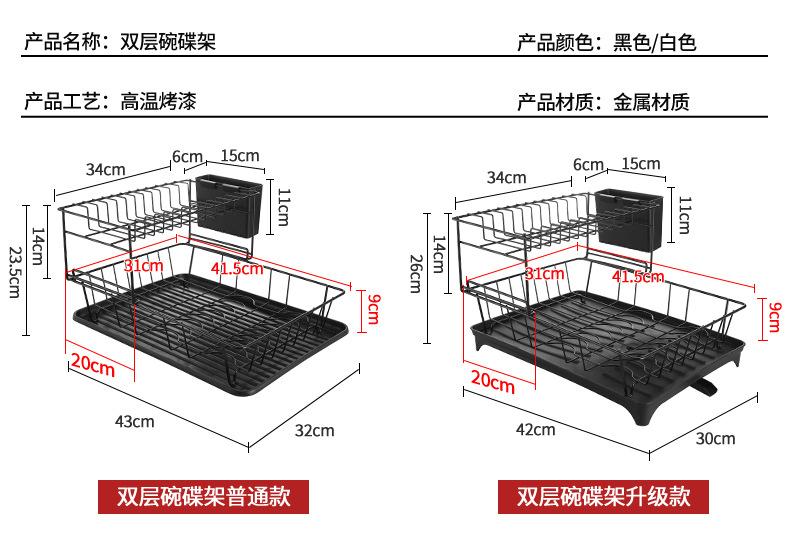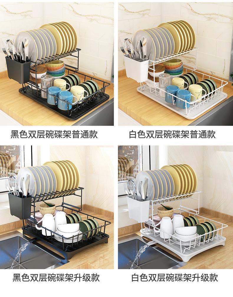 Black two-story dish rack (ordinary style), White two-story dish rack (ordinary style), Black two-story dish r...