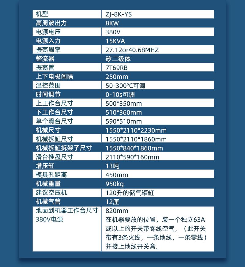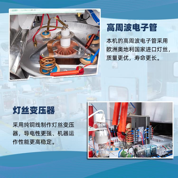 2.Ajuste de fuerza de salidaescuela: Utilizando un oscilador coaxial único de baja pérdida, se puede ajustar en cualquier momento según el tamaño del molde y el grosor del material de goma.escuelaLa fuerza de salida hace que la operacióncausaInterferencia con las telecomunicaciones, regulación de energíaescuelaTambién se puede combinar con el sistema horario.existirSalida máximaTiempoFusionar productos en el menor tiempo posible para aumentar la producción.