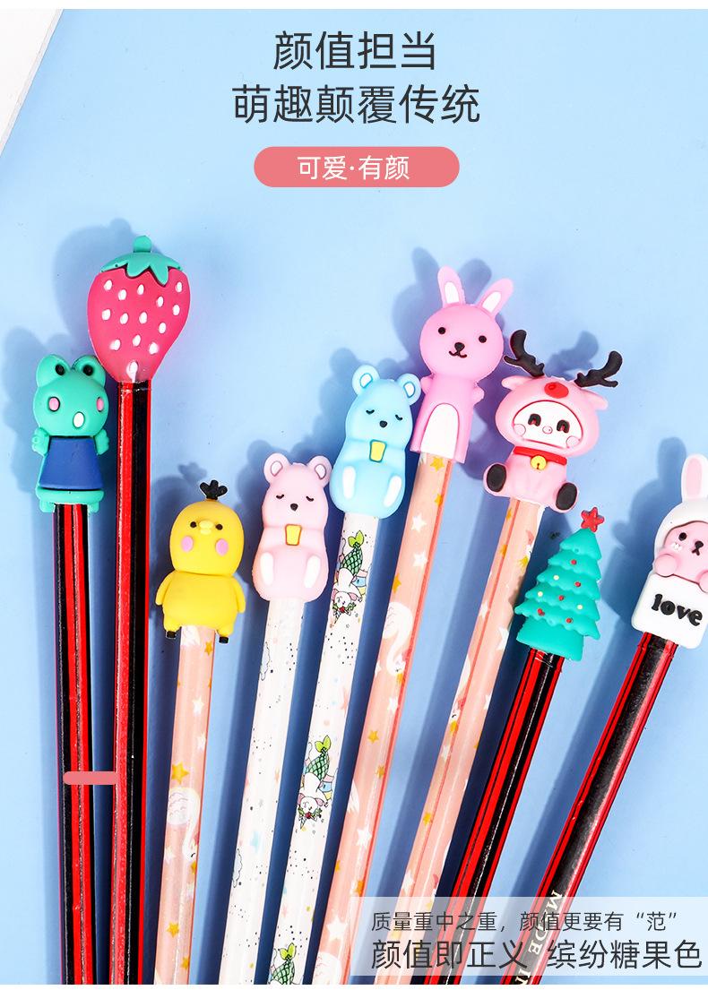 Juego de mini lápices de silicona con dibujos animados, diseño creativo, con forma de fruta tridimensional, de gel y animales