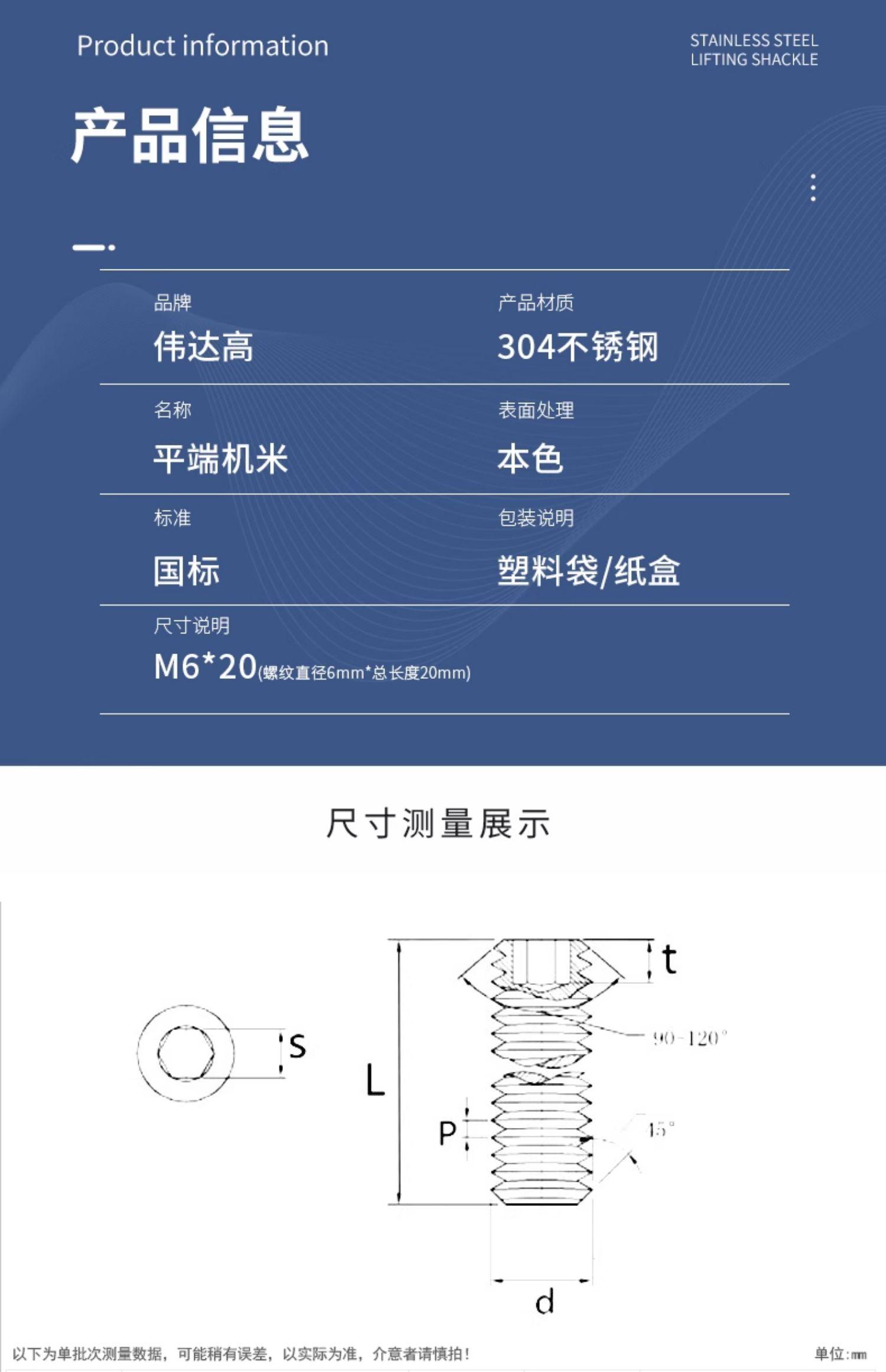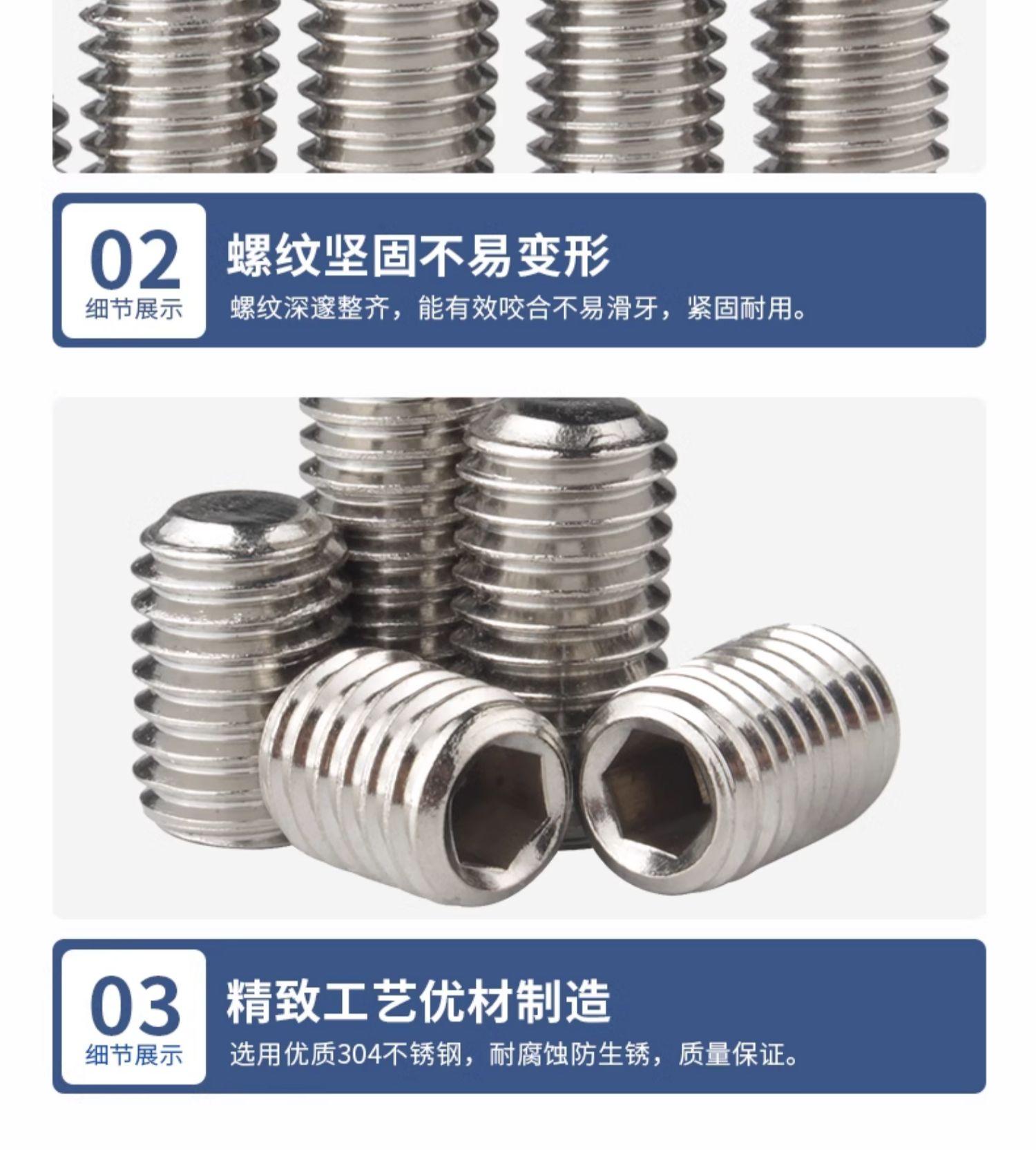 Tornillo de fijación de acero inoxidable 304, tornillo de máquina de extremo plano, hexagonal, sin cabeza, 12,9, alambre superior Kimi M2M3M4M16