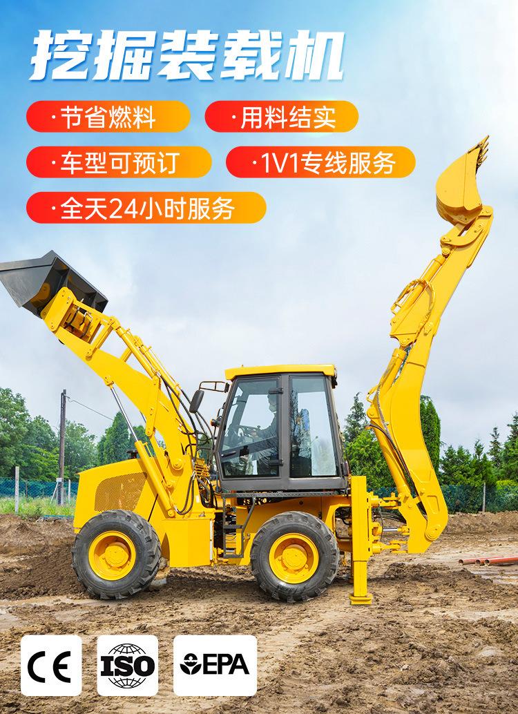 Retroexcavadora transfronteriza con ruedas, pala frontal multifuncional y máquina de excavación trasera integrada, excavadora de dos extremos con tracción en las cuatro ruedas