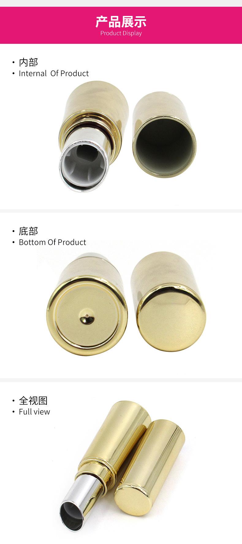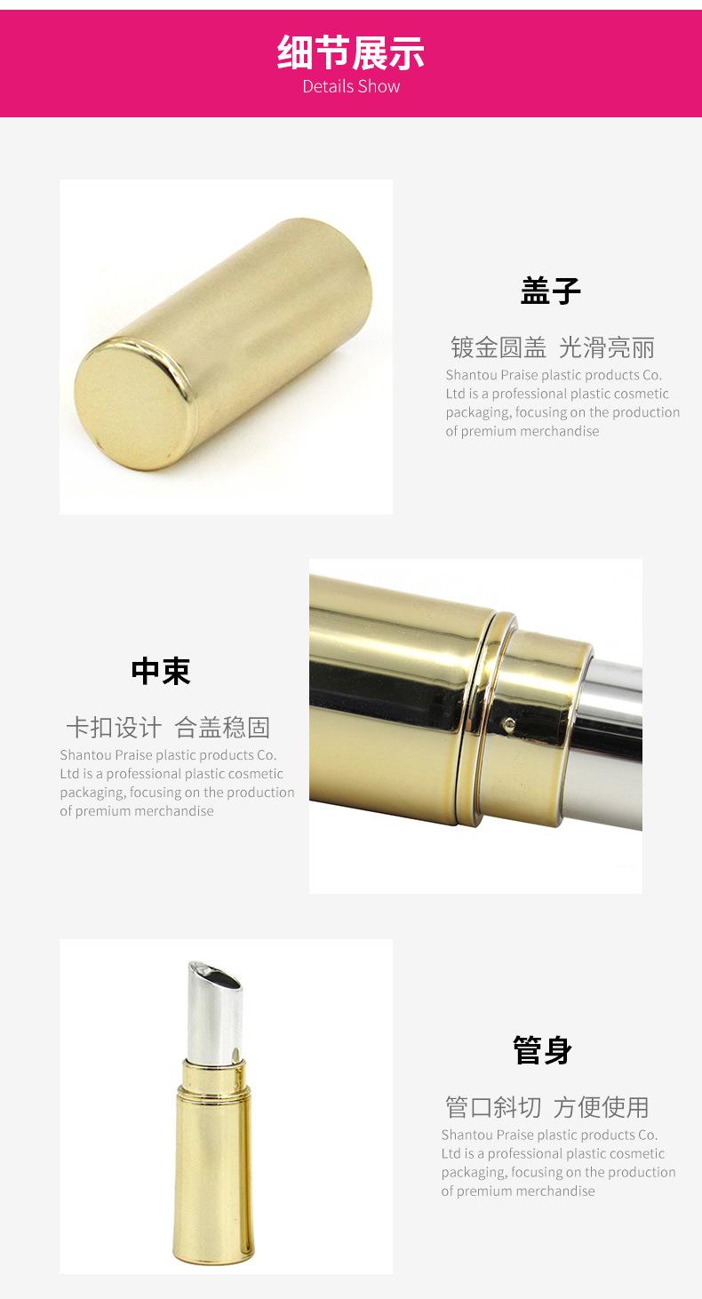 Tubo vacío de lápiz labial de plástico dorado redondo, suministro al por mayor, tubo de lápiz labial oblicuo, tubo de bálsamo labial, material de embalaje cosmético