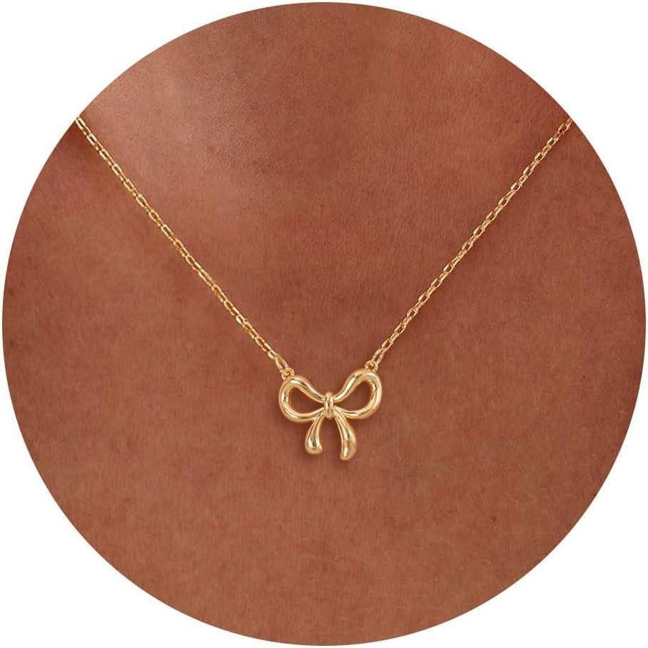 Collar de Oro para Mujer - Collar de Lazo de Acero Inoxidable Collar de Acero al Titanio Lazo de Princesa Fugitiva