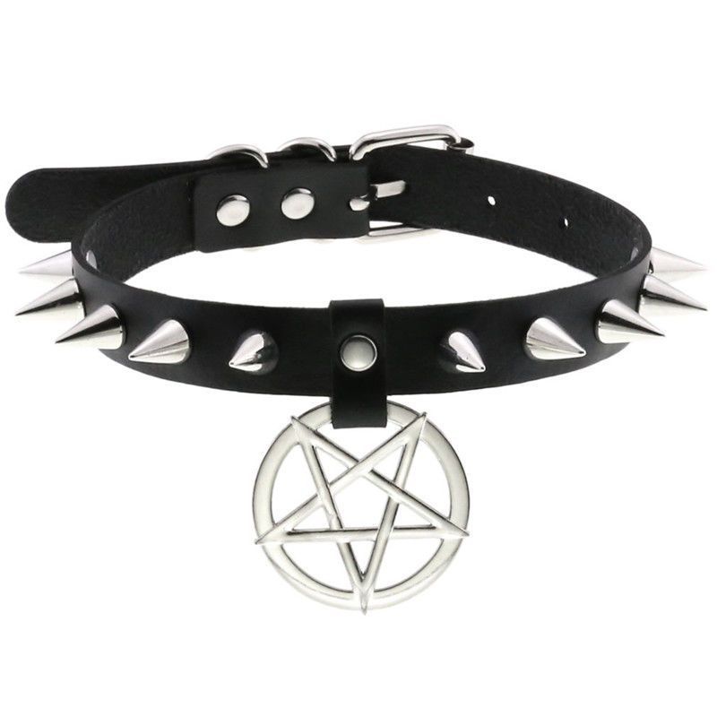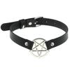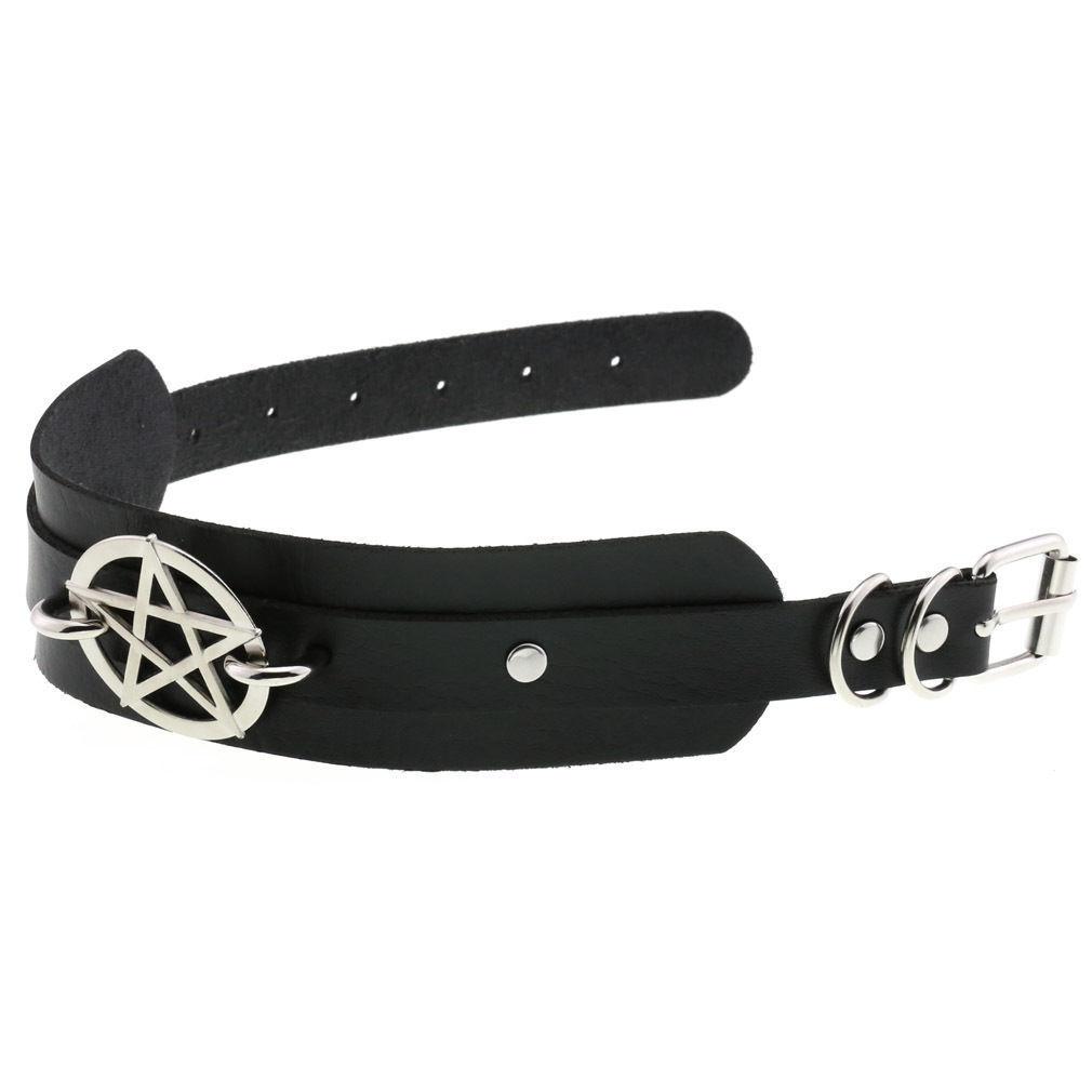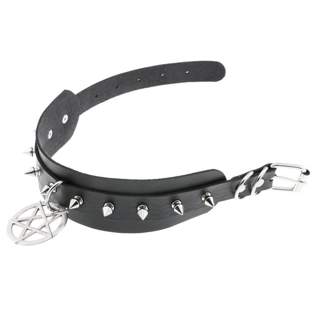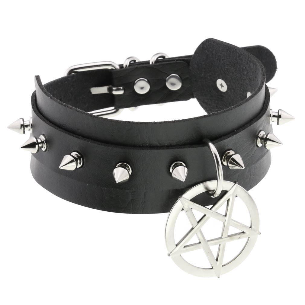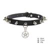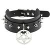 Collar gótico punk PJH para mujer, correa para el cuello, collar con remaches de cuero, collar de estrella oscura de cinco puntas, gargantilla de clavícula