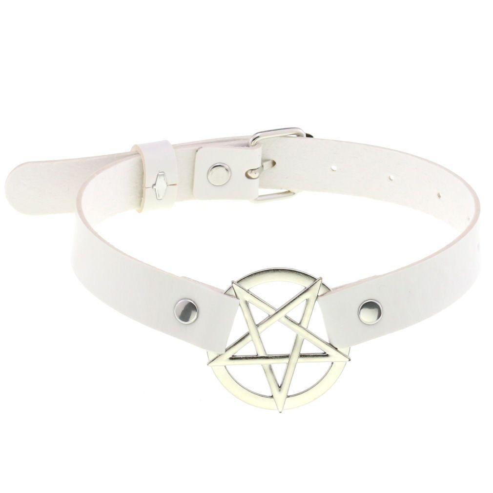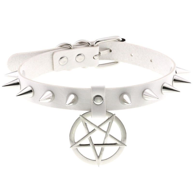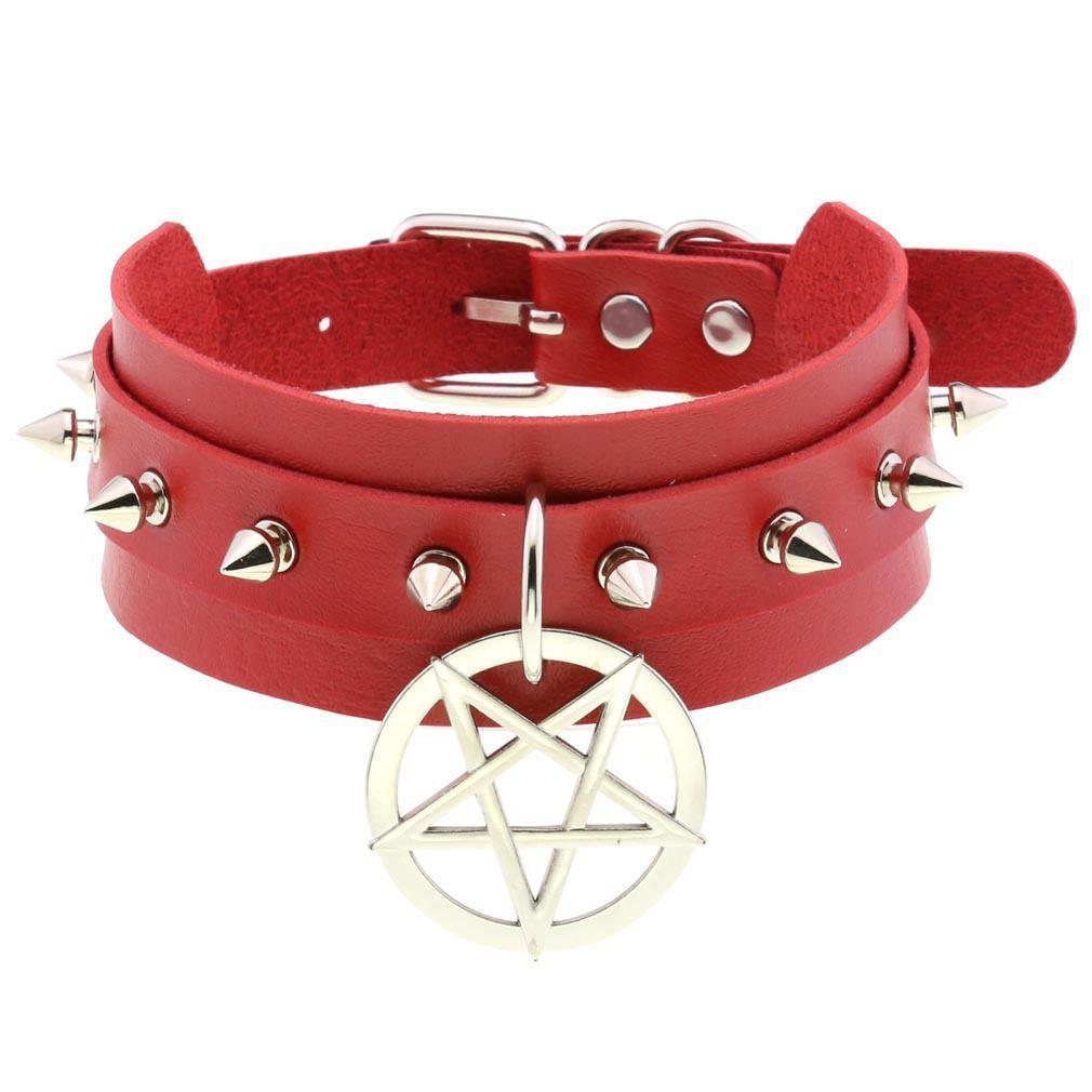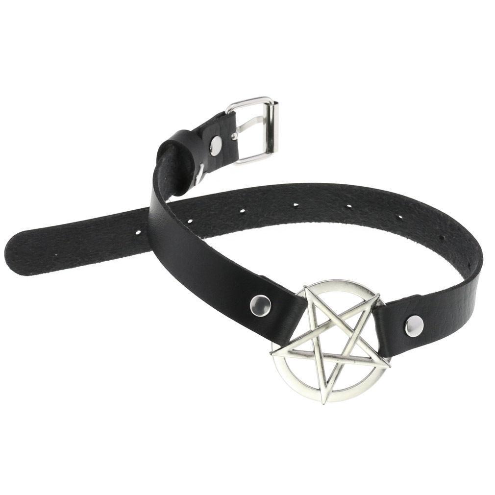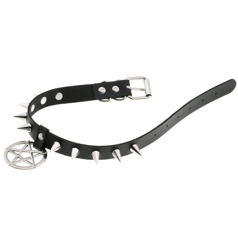 Collar gótico punk PJH para mujer, correa para el cuello, collar con remaches de cuero, collar de estrella oscura de cinco puntas, gargantilla de clavícula