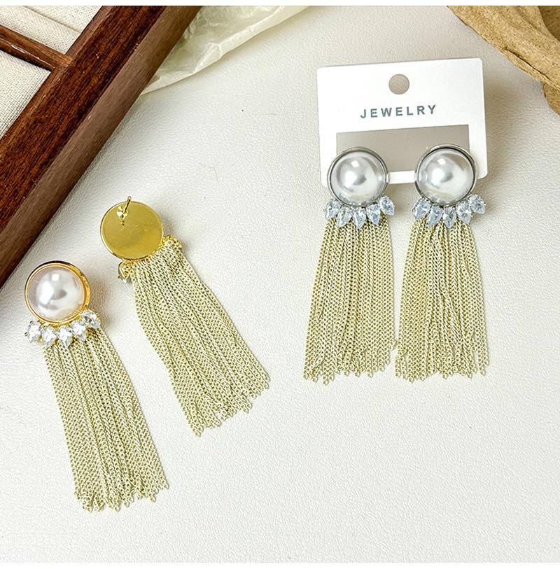 Pendientes largos de perlas con borlas Lugong para mujer, modernos, ligeros, de lujo, de nicho, con temperamento que combina con todo, pendientes de diamantes al por mayor