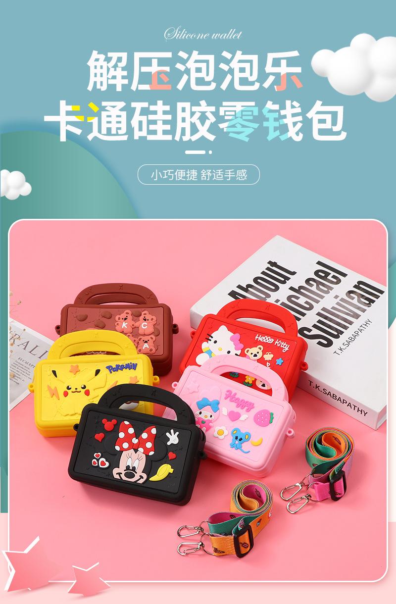 Monedero creativo para niños, pequeño bolso cuadrado de silicona, bandolera, bolso de niña de dibujos animados, monedero Bubble Le