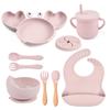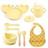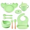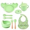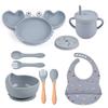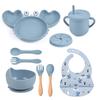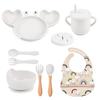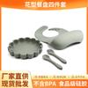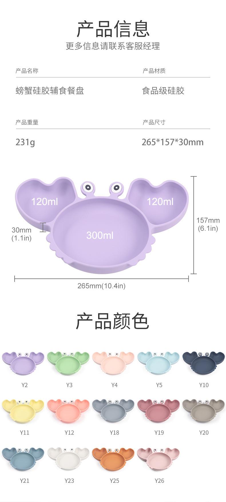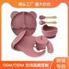 Paquete de vajilla complementaria de silicona para bebés transfronterizos con forma de cangrejo, tazón de succión de silicona para niños, cuchara para bebés, plato integrado