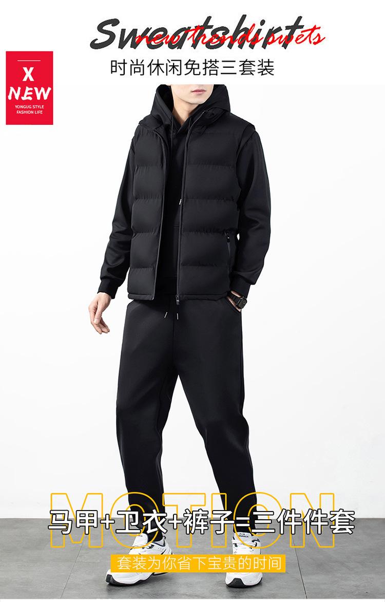 Suéter con capucha de otoño de tres piezas para hombre, nueva ropa de moda a juego, traje deportivo, chaleco informal, ropa para hombre