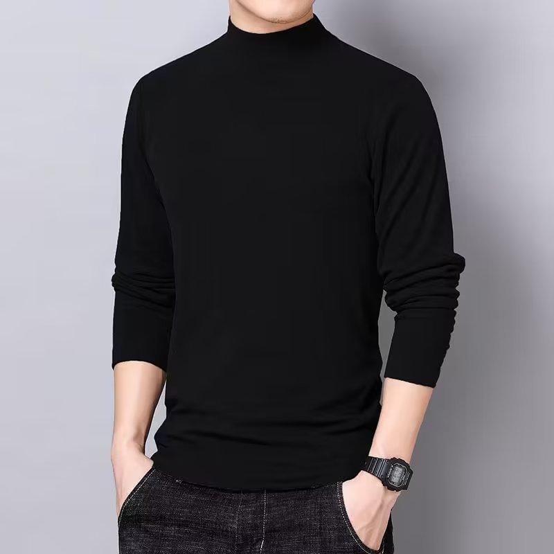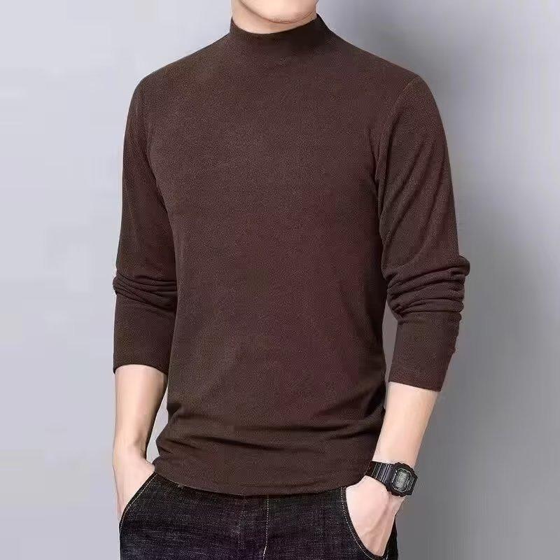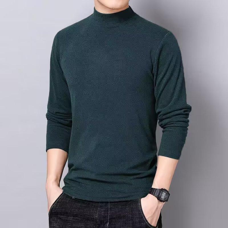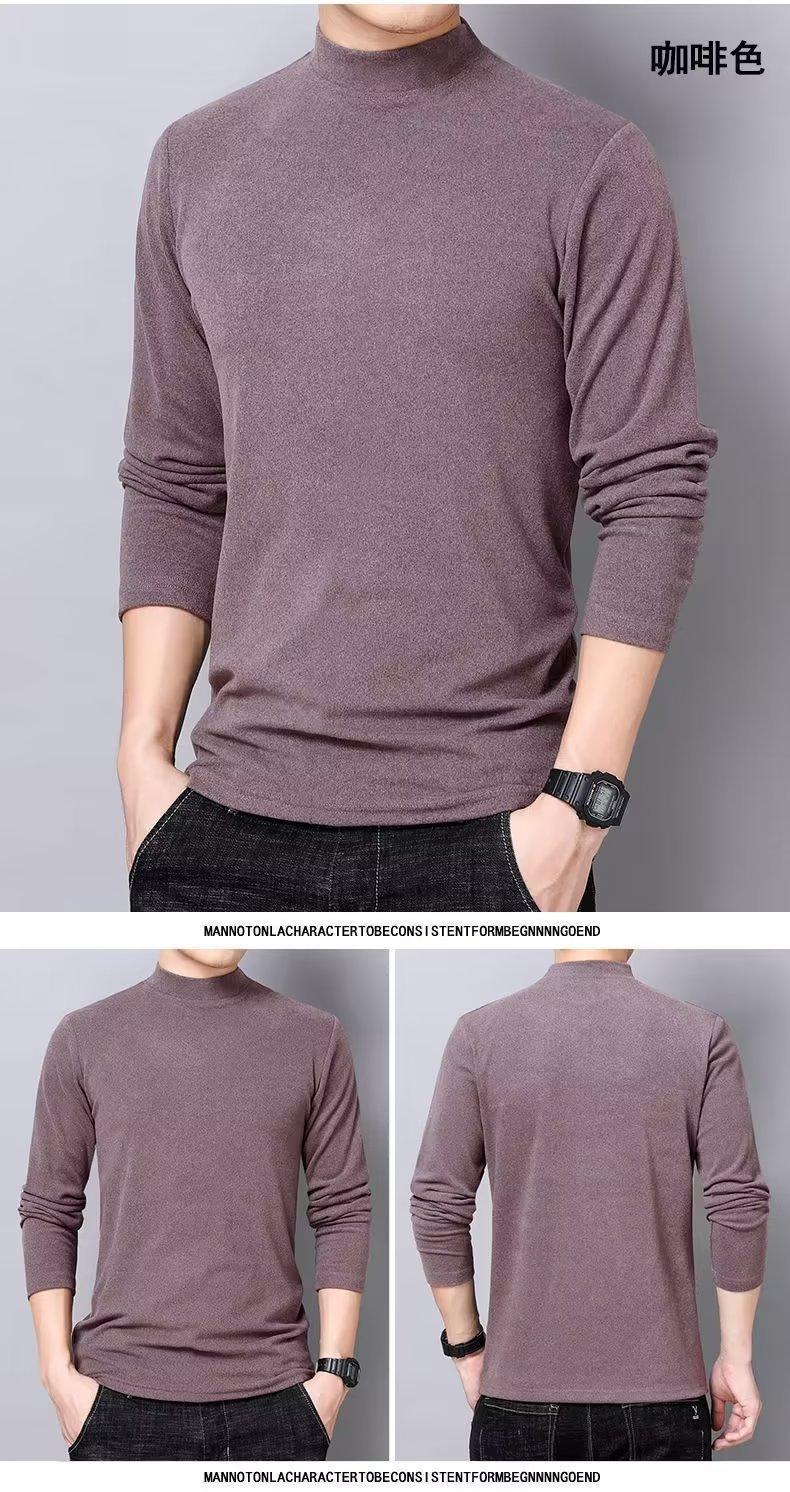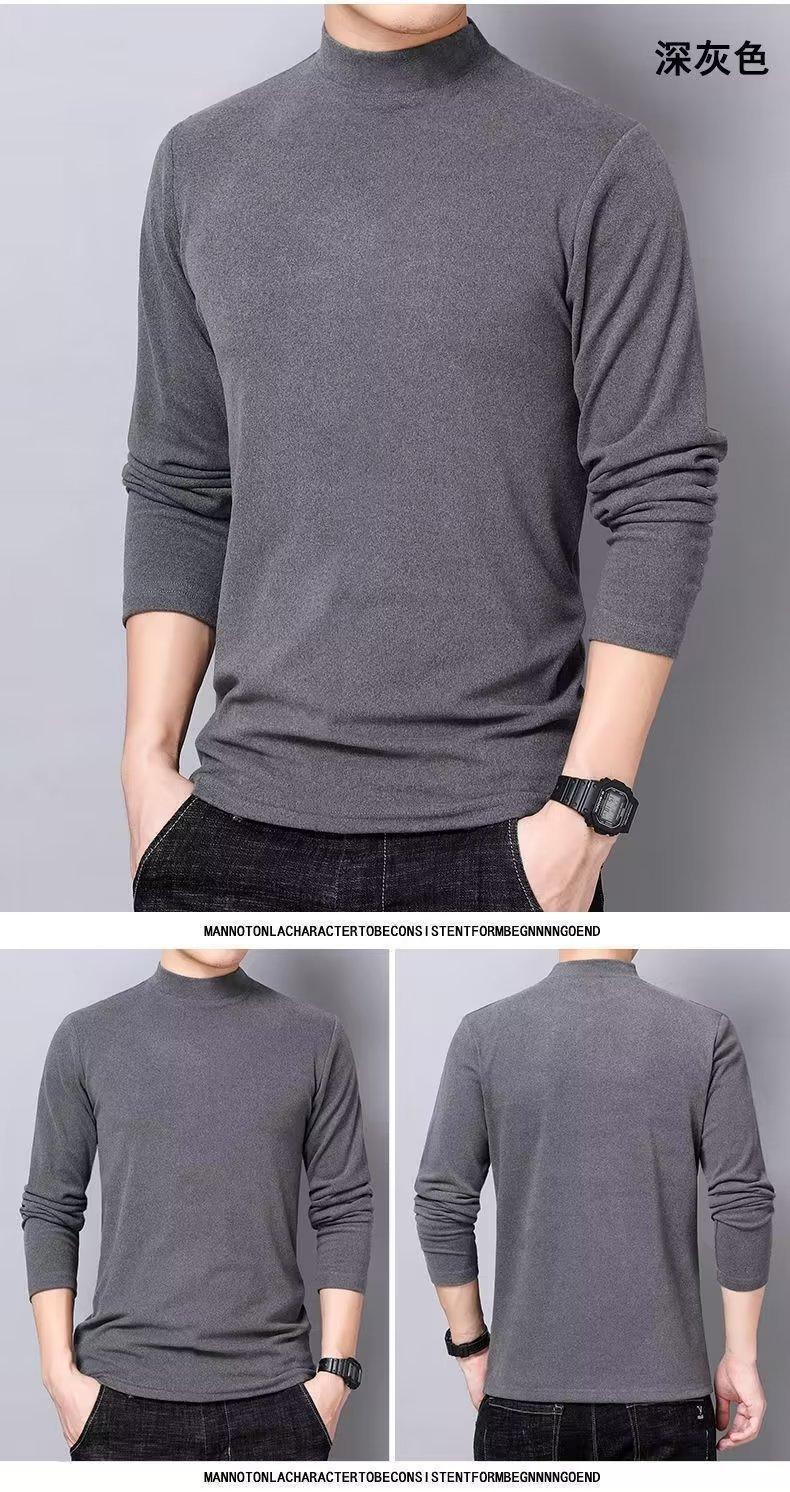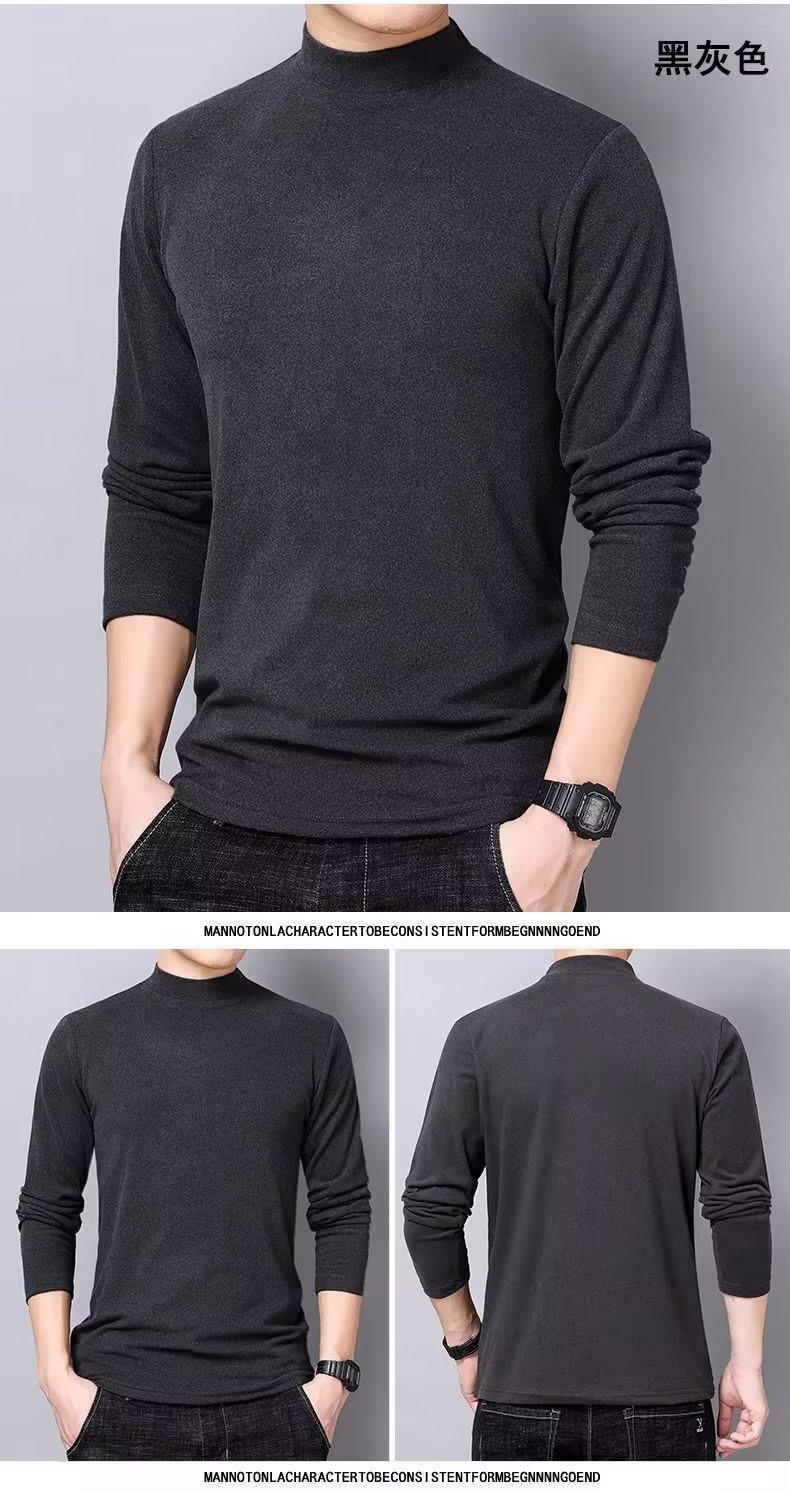 Camisa básica de cuello medio alto de polar de doble cara de otoño e invierno 2023, camisa de manga larga para hombre, top interior fino y cálido de corte entallado
