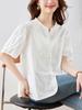 Camisa de primavera y verano nueva con cuello redondo, cordones bordados, hueca, fina, de color sólido, para mujer, diseño de estilo occidental transparente pequeño.