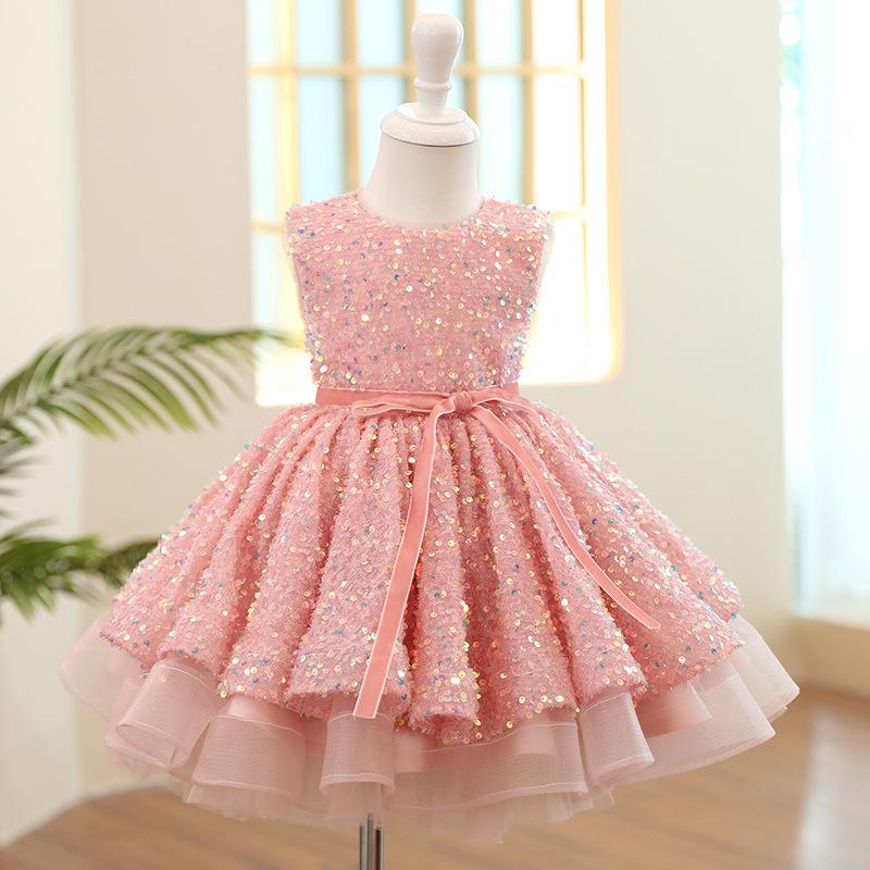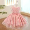 Vestido Infantil Vestido de Princesa Vestido de Cumpleaños Rosa Vestido de Anfitriona Vestido de Show para Niña Vestido para Actuación de Piano Transfronterizo
