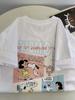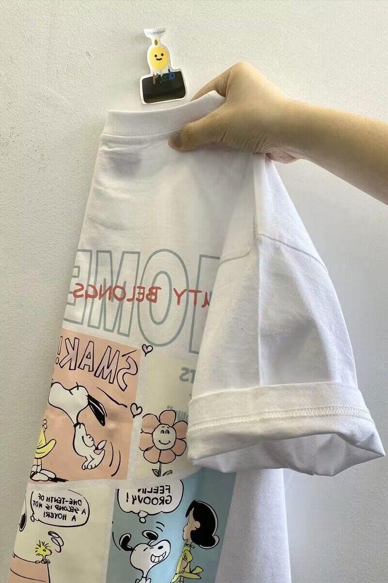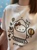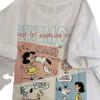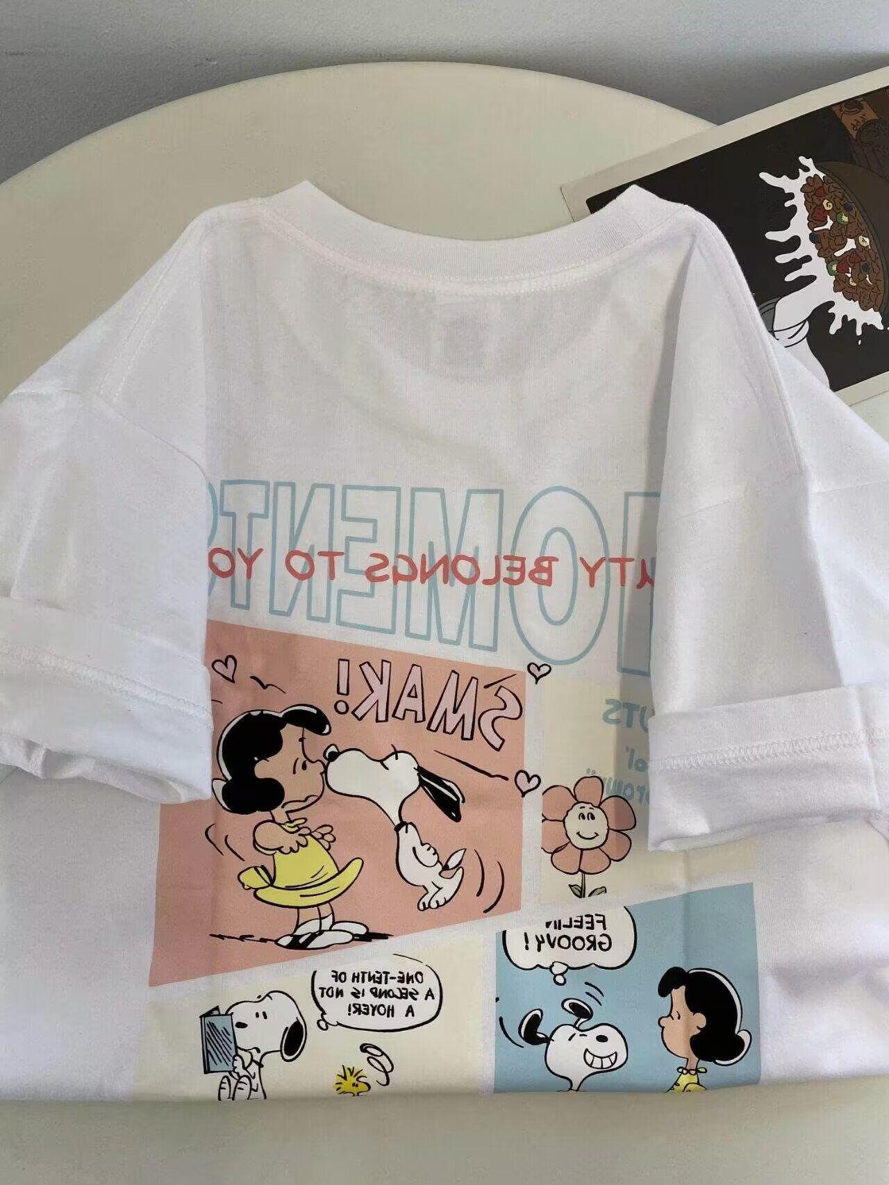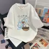 Camiseta de manga corta con estampado de dibujos animados de algodón para mujer, estilo Harajuku holgado de verano, estilo americano, estilo retro, de media manga y gran tamaño.
