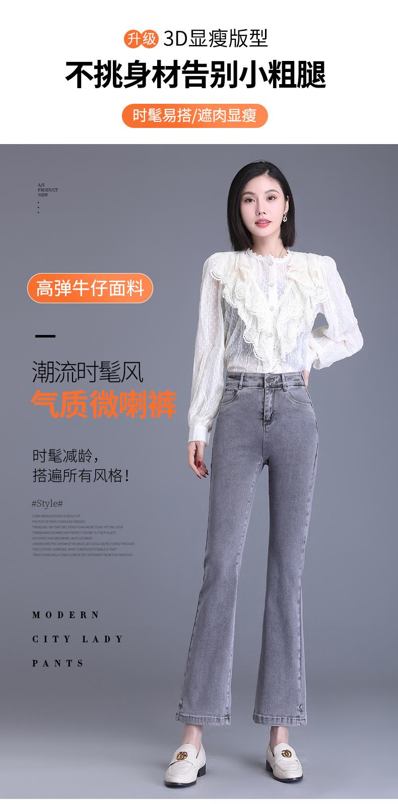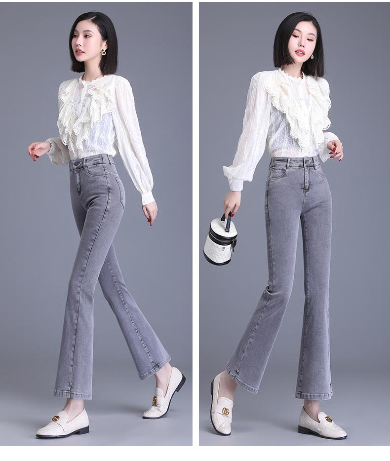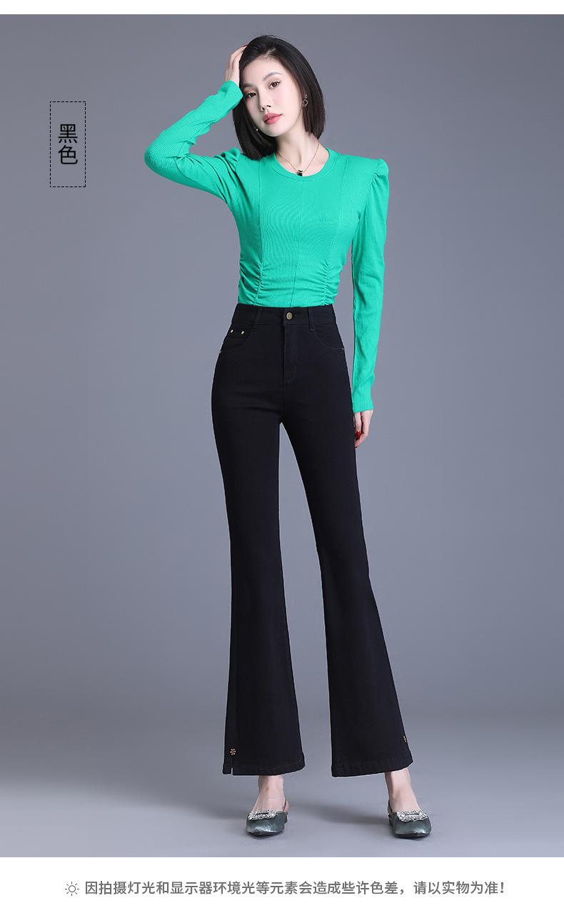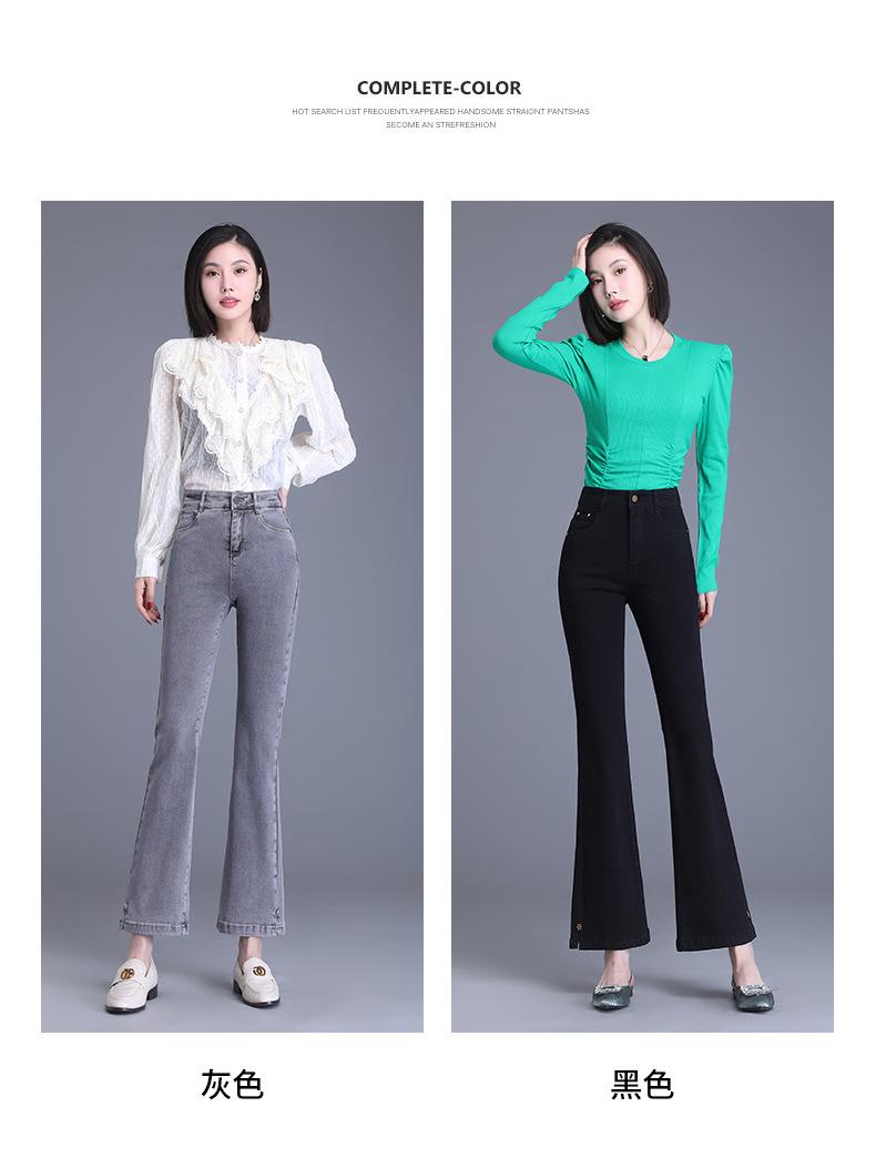 Jeans Acampanados Divididos para Mujer 2023 Otoño Nuevo Talla Grande Pantalones Acampanados de Cintura Alta para Mujeres de Mediana Edad y Mayores