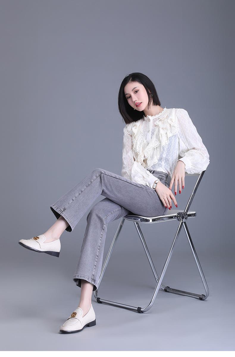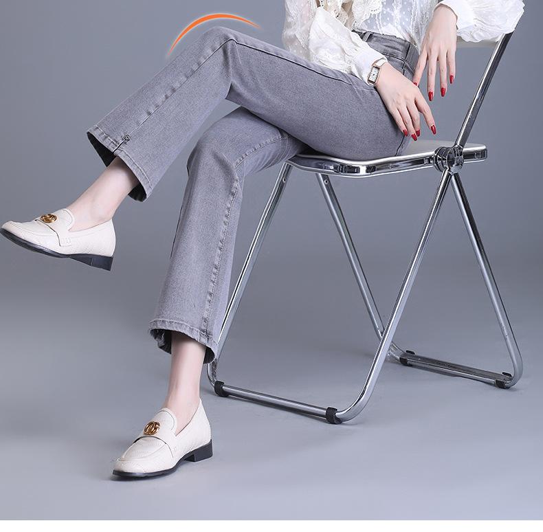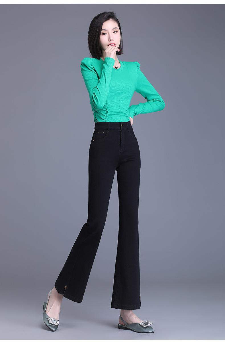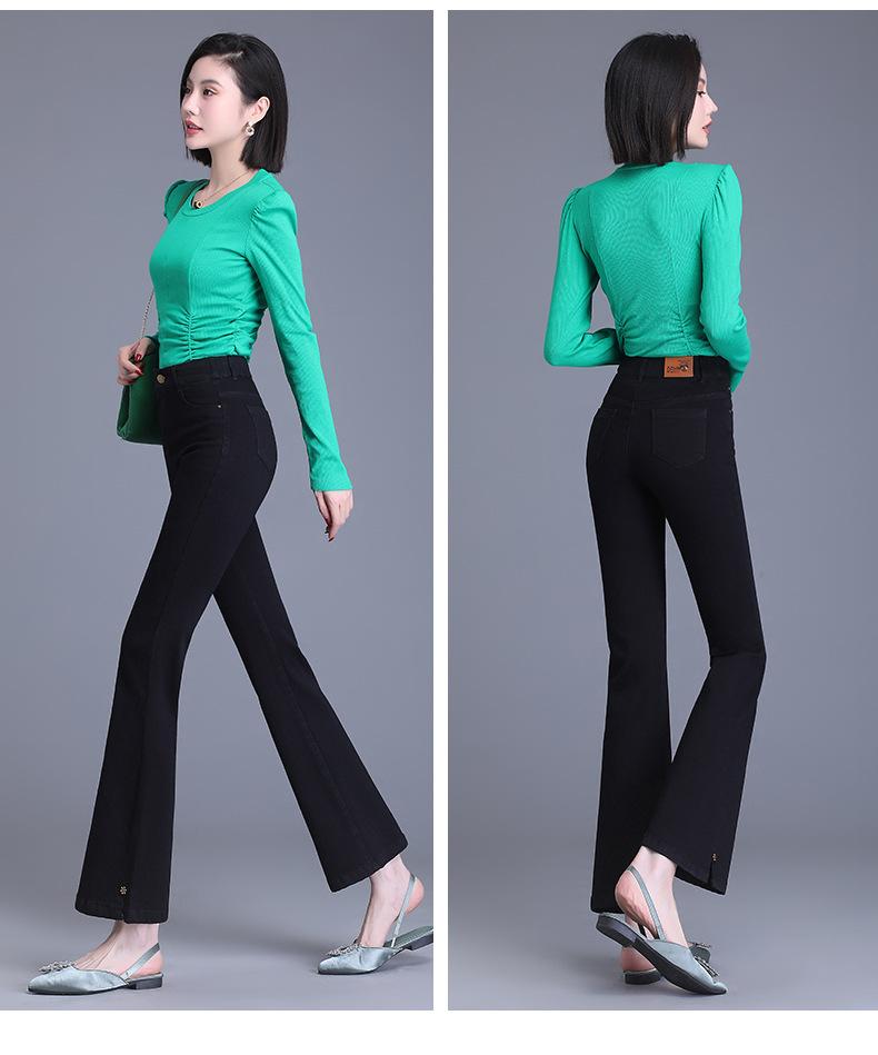 Jeans Acampanados Divididos para Mujer 2023 Otoño Nuevo Talla Grande Pantalones Acampanados de Cintura Alta para Mujeres de Mediana Edad y Mayores
