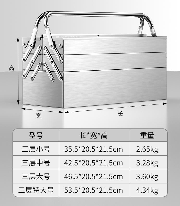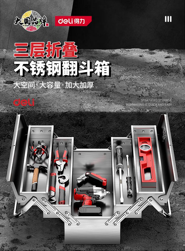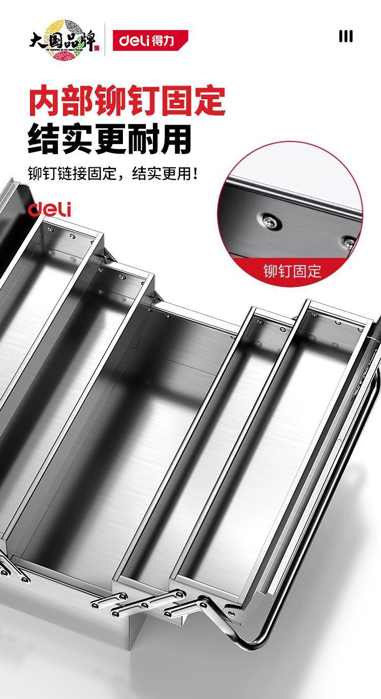 Compra Caja de herramientas de acero inoxidable Deli, plegable, de tres capas, para el hogar, gruesa, portátil, para almacenamiento industrial, multifunción al por mayor en Joom.pro