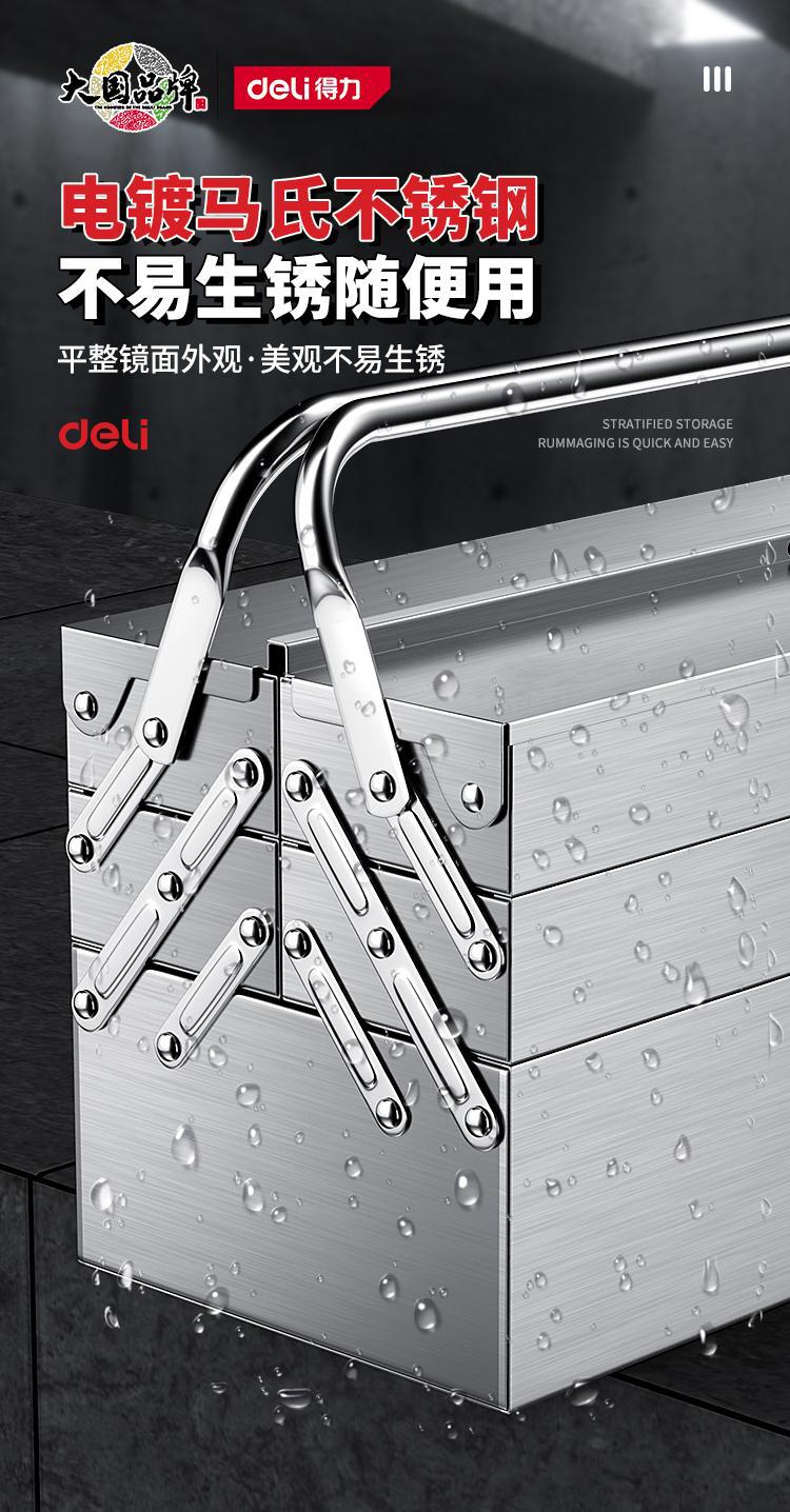 Deli 350 three-layer stainless steel tool box, 2.7kg/piece