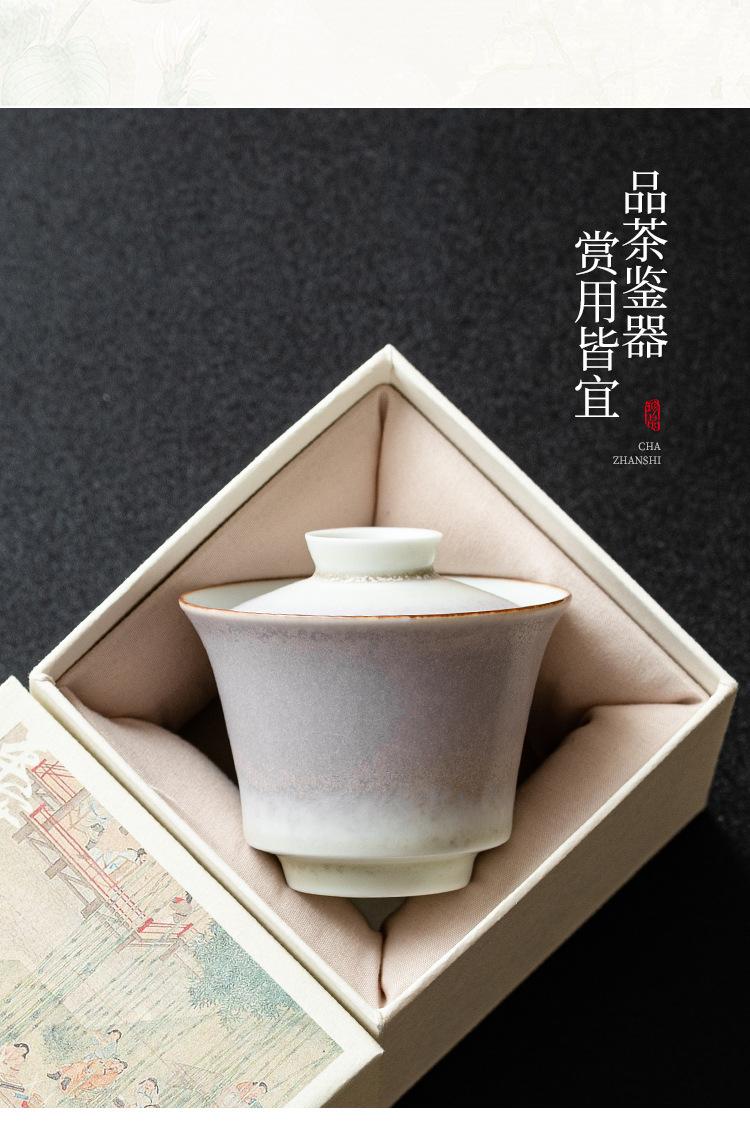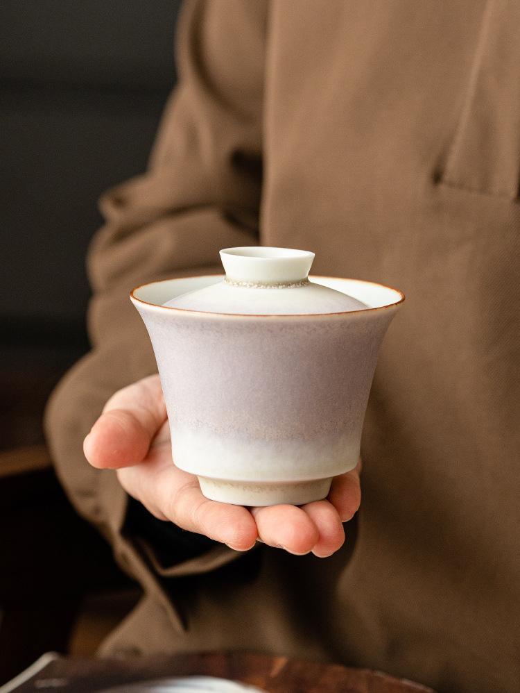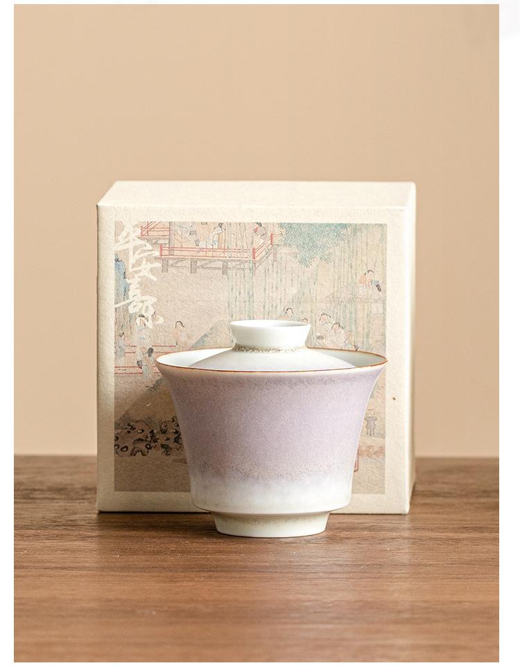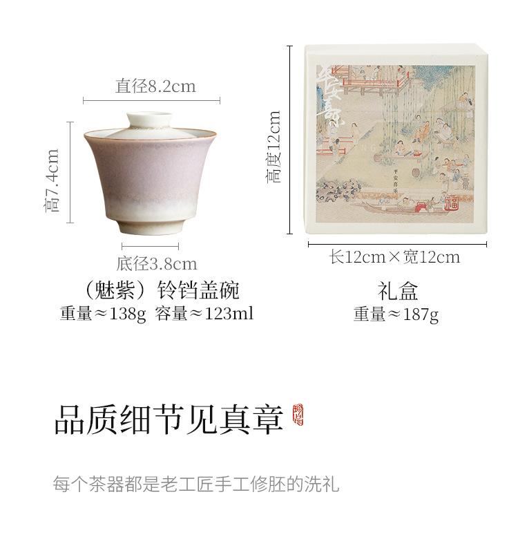 Cuenco de té con tapa, cambio de horno de fábrica, cuenco con tapa de campana morada con encanto de macarrón, taza de té, juego de té de kung fu de alta calidad, cuenco de té grande