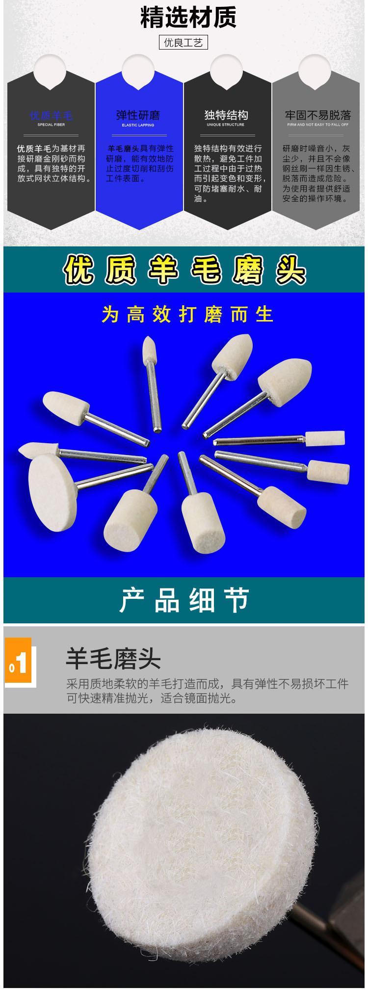 Cabezal de pulido de lana, rueda de pulido cilíndrica de lana, cabezal de pulido pequeño con punta, cabezal plano, cabezal de pulido eléctrico de piel de oveja con forma de bala