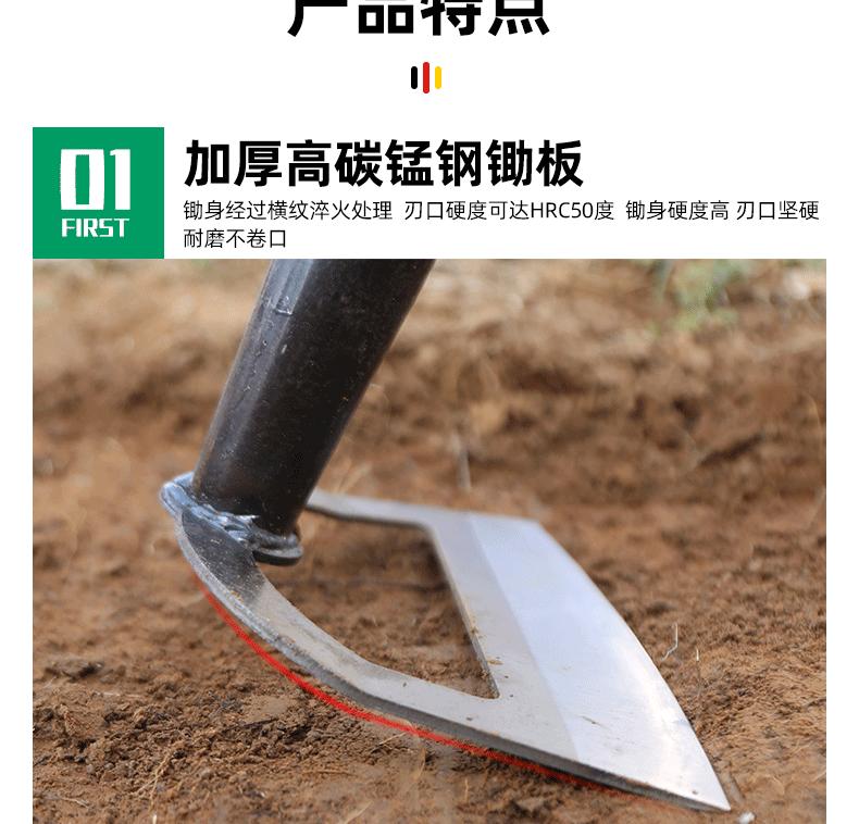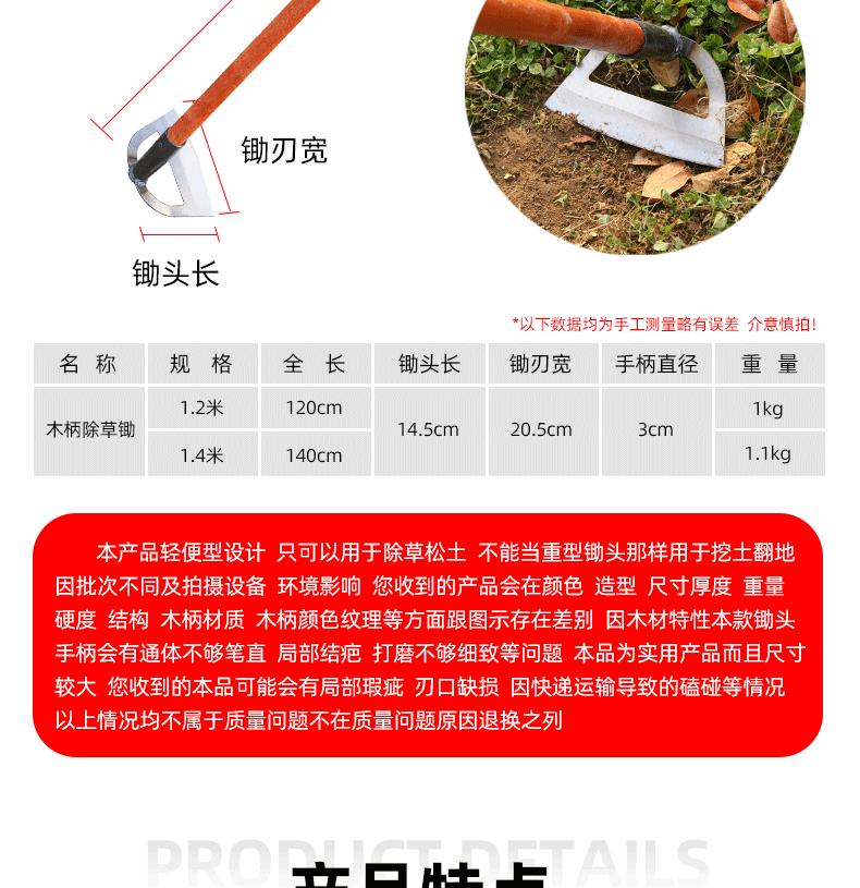 [large size] manganese steel hollow hoe + 1.2m locust wooden handle