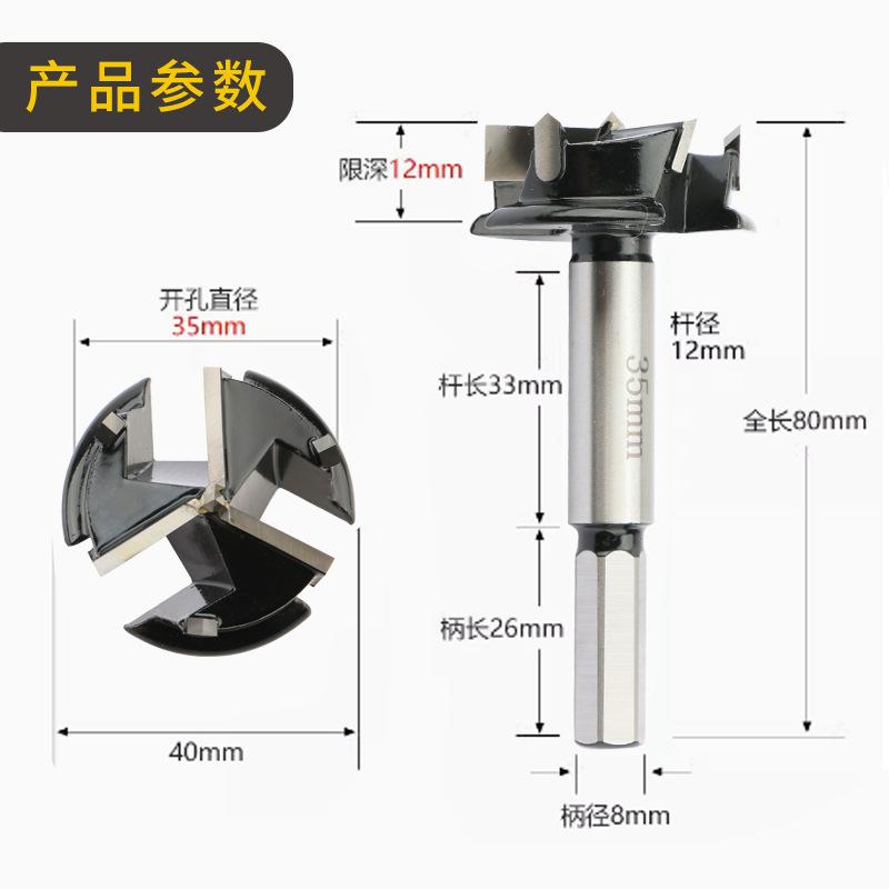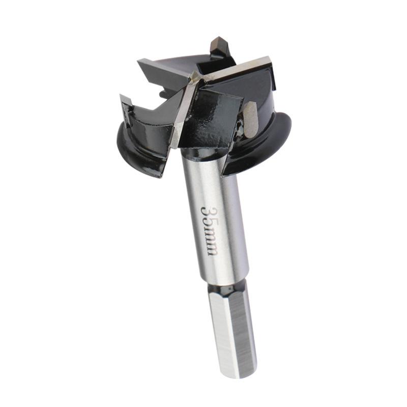Broca para madera flor de ciruelo de tres hojas de 35 mm, mango hexagonal, para taladrar bisagras, cerraduras de puerta, escariado, posicionamiento, broca