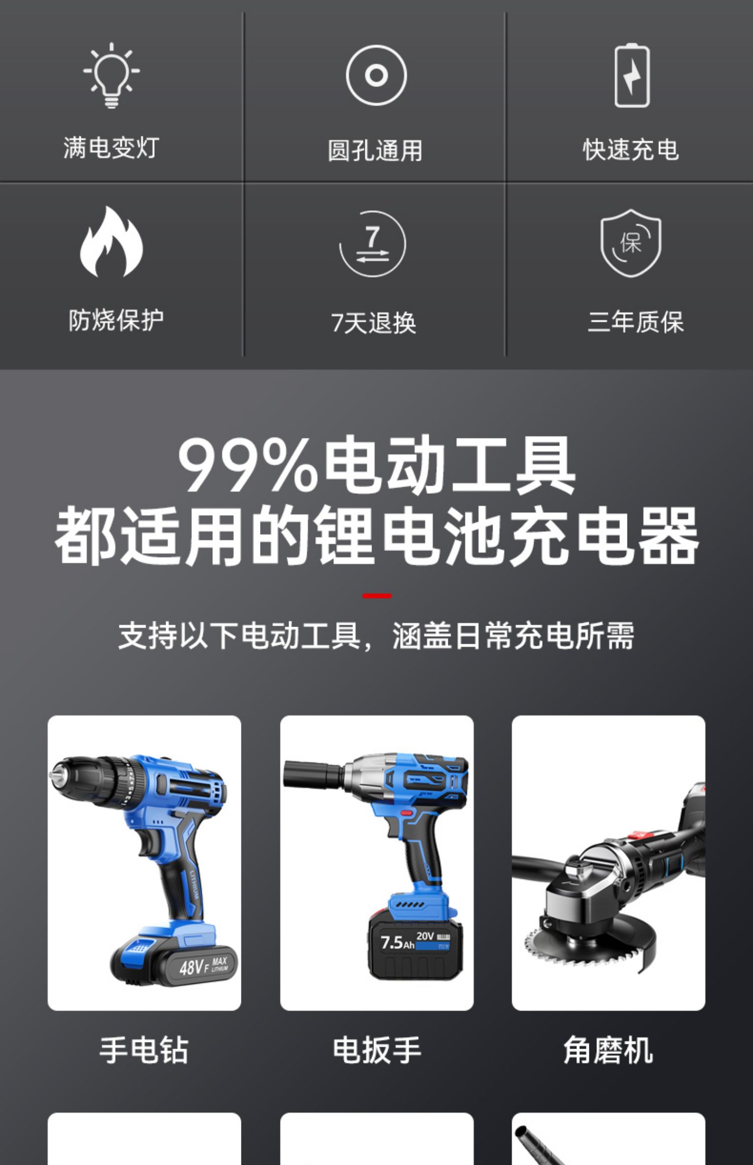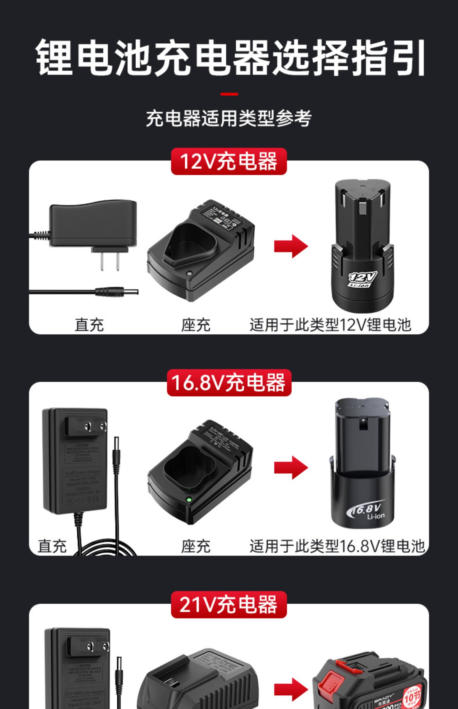 16.8v-18v universal charger [full power changing light]