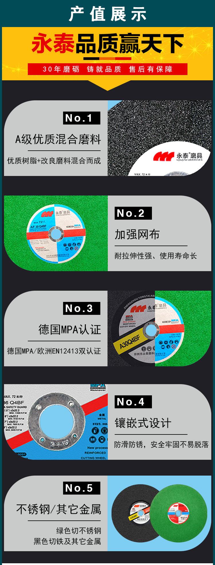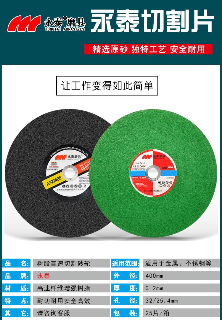 Cuchilla de corte Yongtai de 400 mm, color negro y verde, para máquina de corte, hoja de sierra especial para metal, acero inoxidable, muela abrasiva, cuchilla de afilar