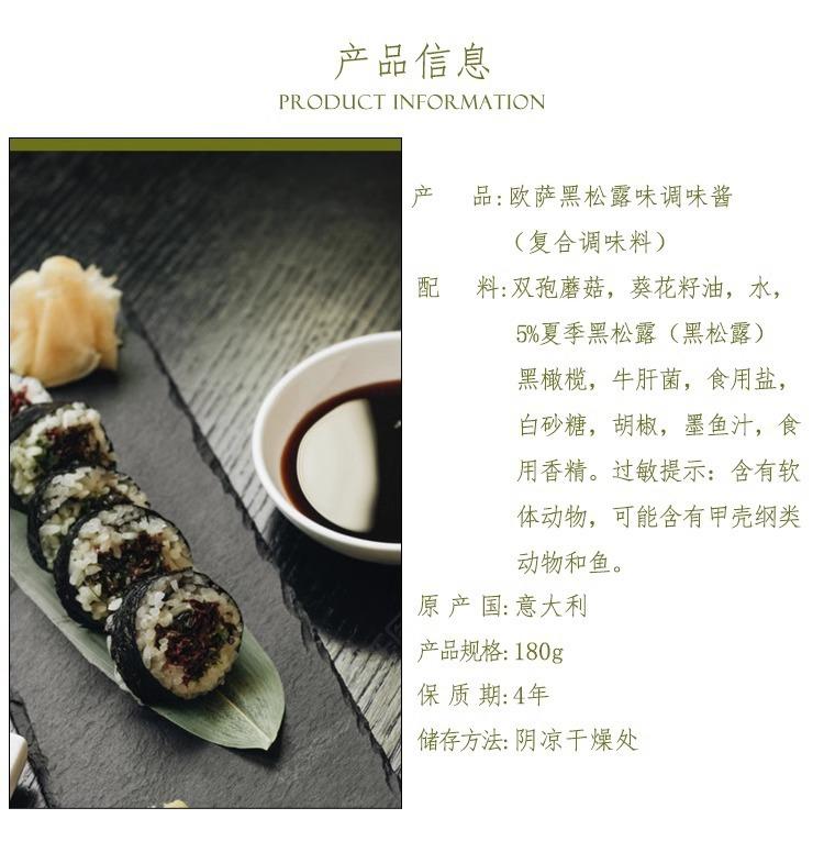 Salsa de trufa negra Ossa de franqueo 180 g italiana importada occidental pizza mariscos pasta salsa de risotto