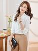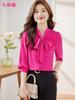 Camisa de mujer Qiguniang con diseño de temperamento de moda y nicho, nueva camisa de mujer con lazo suelto y volantes