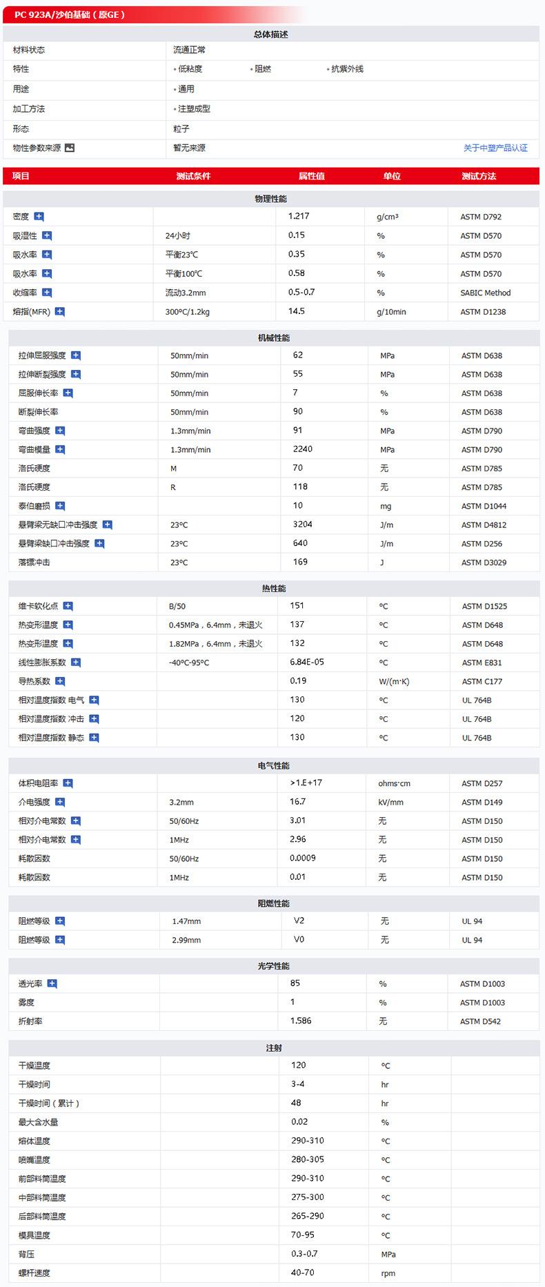 PC 923A/base de sable, baja viscosidad, grado retardante de llama, grado de moldeo por inyección general resistente a los rayos UV