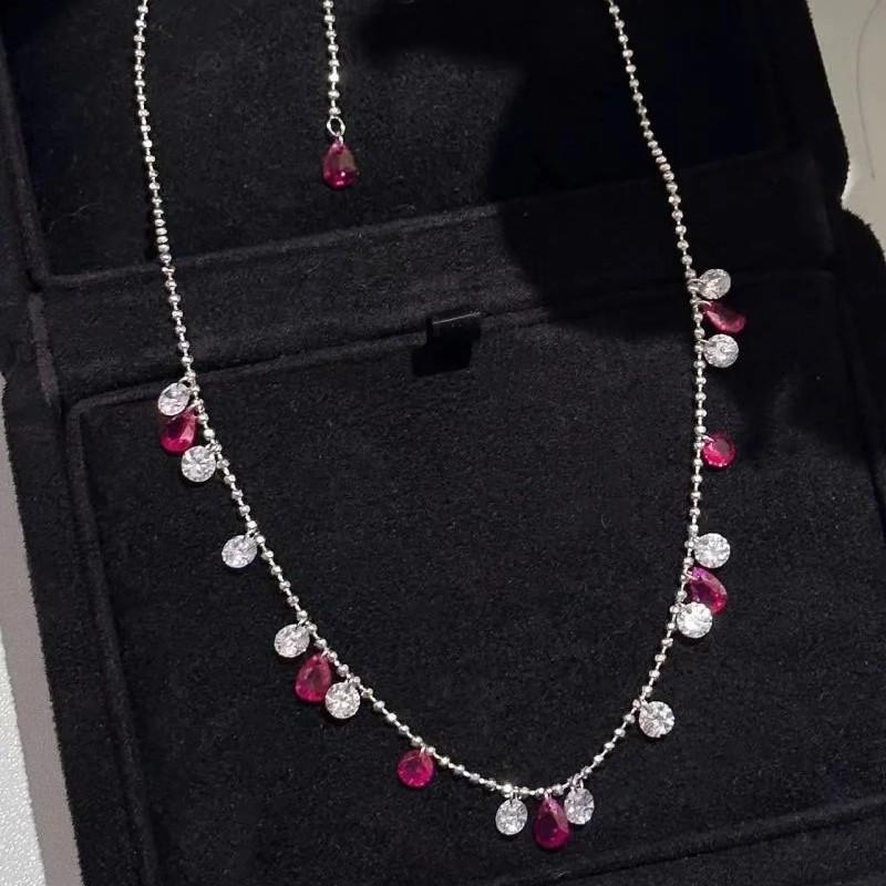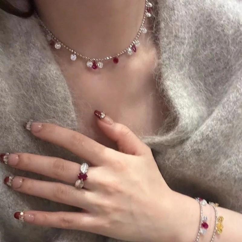 Collar Tianchen con diseño Gympani, color rojo corindón, diamante desnudo, combinable con todo, estilo chino, cadena de clavícula con temperamento.