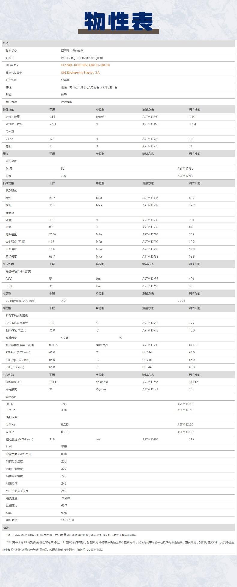 Standard material*injection molding grade*1.14 g/cm³*175℃