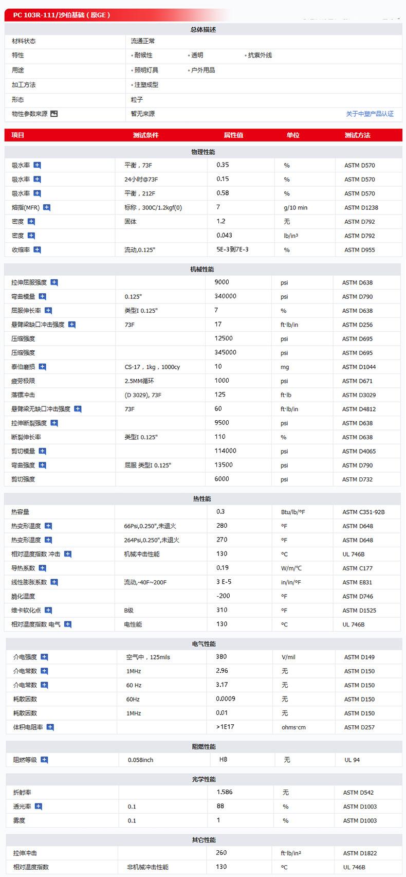PC 103R-111/saber grado básico transparente, resistente a la intemperie, grado de moldeo por inyección anti-ultravioleta para electrodomésticos de exterior